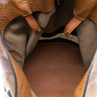 Ausgestattet mit einem flachen Lederhenkel und einem flachen Leder-Schulterriemen lässt sich das Modell in der Hand oder komfortabel über der Schulter tragen. Der offene obere Abschluss ermöglicht schnellen Zugriff auf den Inhalt, während ein herausnehmbares Canvas-Pouch Ordnung schafft und Essentials separat aufbewahrt. Die mittlere Grösse bietet ausreichend Platz für Portemonnaie, Smartphone, Schlüssel und kleine Kosmetik, ohne die Silhouette zu beschweren.
