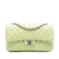 Chanel Classic Double Flap Medium Green Lambskin Silver