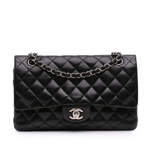Chanel Classic Double Flap Medium Black Lambskin Silver