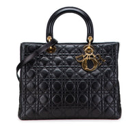 Dior Lady Dior Large Black Cannage Lambskin Gold