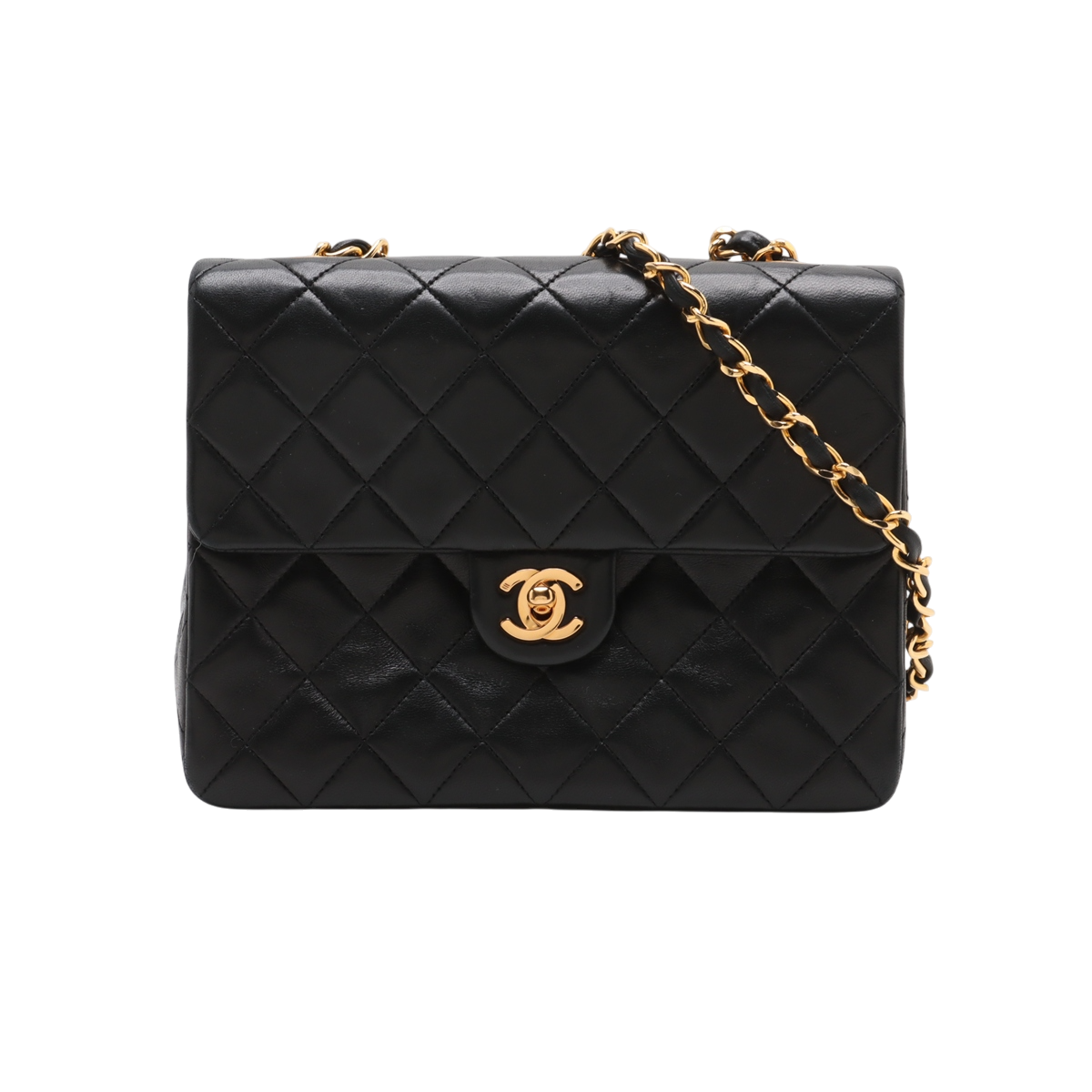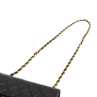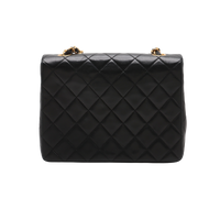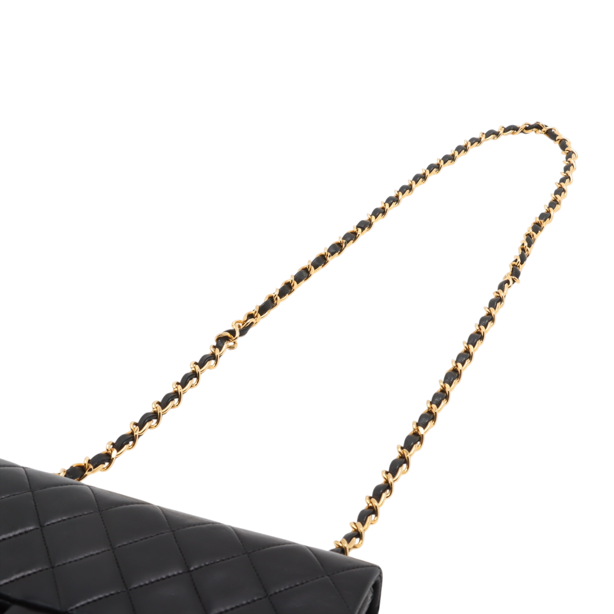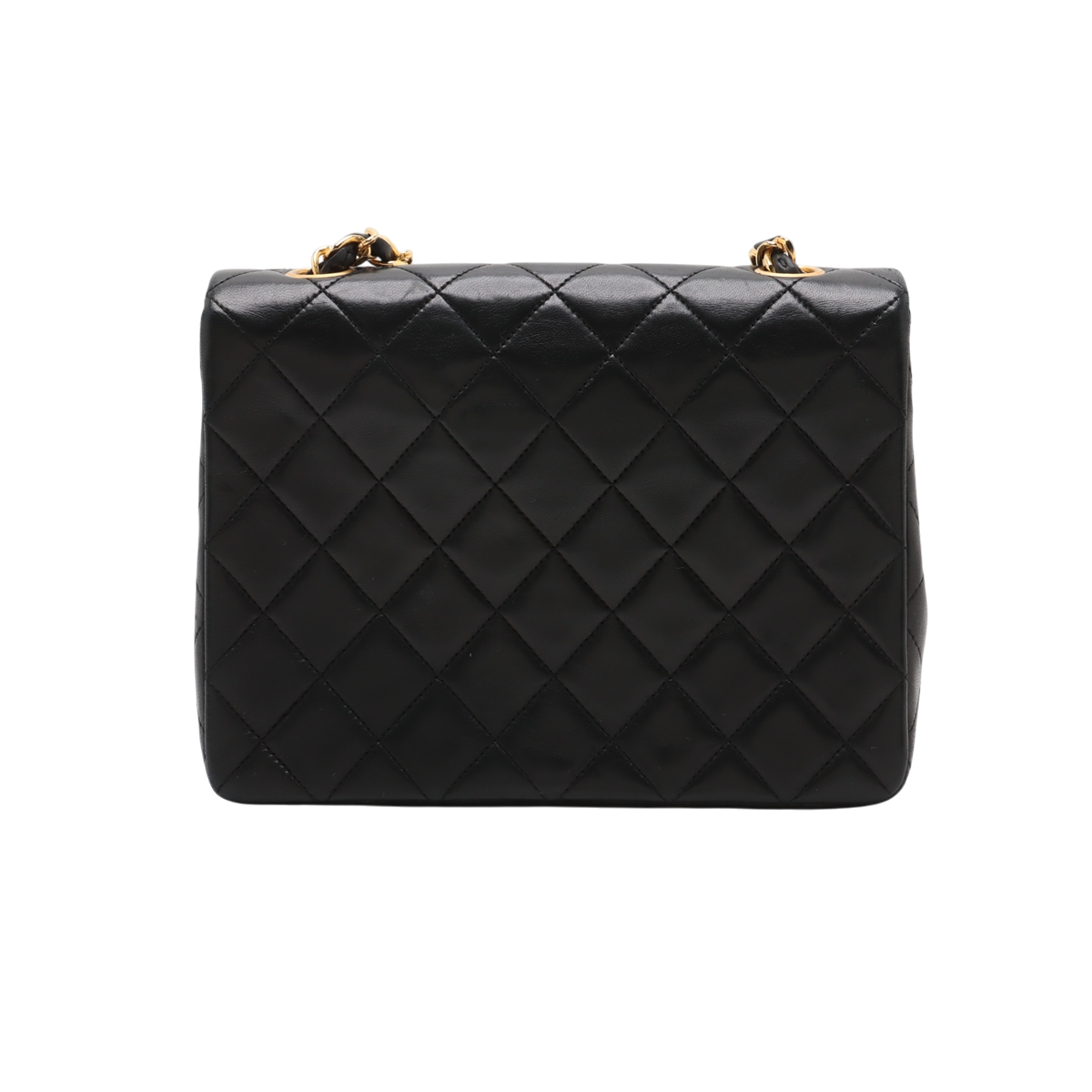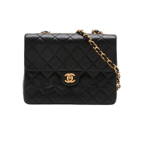 Diese Chanel Vintage Single Flap verkörpert die zeitlose Eleganz des Hauses in ihrer pursten Form. Gefertigt aus schwarzem, geschmeidigem Lammleder und kombiniert mit klassischer goldfarbener Hardware, strahlt diese Tasche eine zurückhaltende, ikonische Ästhetik aus. Die feine Steppung, der charakteristische CC-Drehverschluss und die klaren Proportionen machen sie zu einem echten Chanel Klassiker mit historischem Charme.