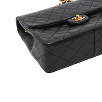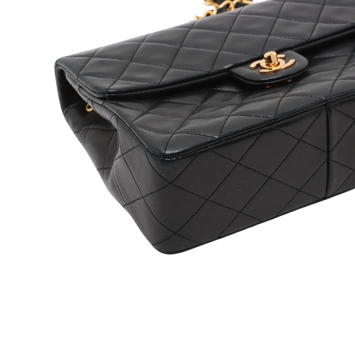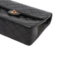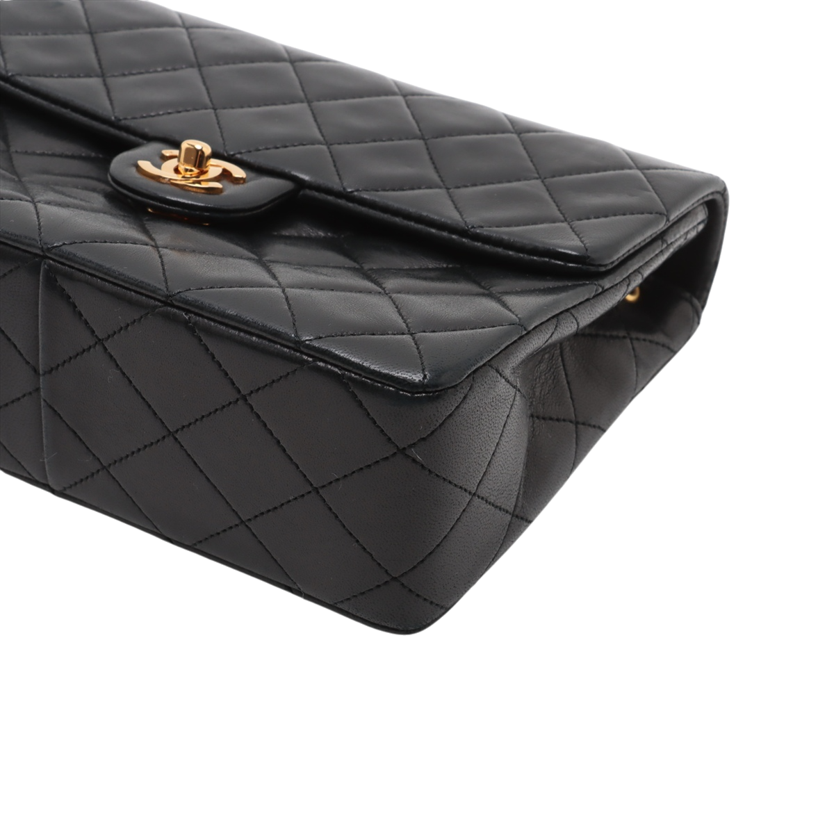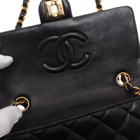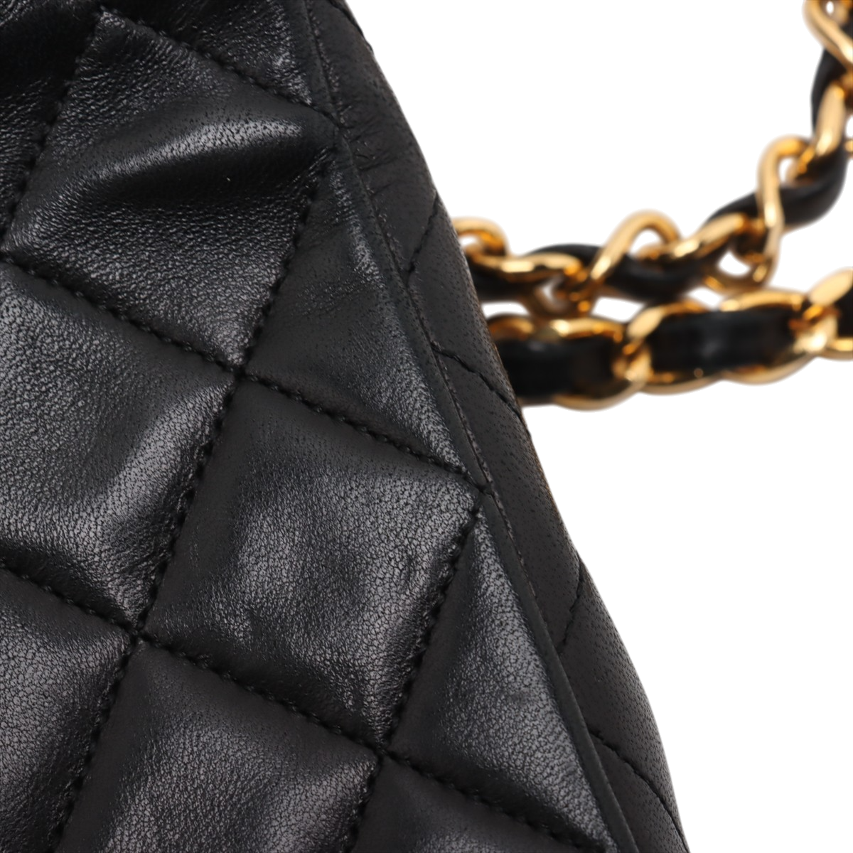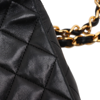 Diese Chanel Vintage Single Flap verkörpert die zeitlose Eleganz des Hauses in ihrer pursten Form. Gefertigt aus schwarzem, geschmeidigem Lammleder und kombiniert mit klassischer goldfarbener Hardware, strahlt diese Tasche eine zurückhaltende, ikonische Ästhetik aus. Die feine Steppung, der charakteristische CC-Drehverschluss und die klaren Proportionen machen sie zu einem echten Chanel Klassiker mit historischem Charme.