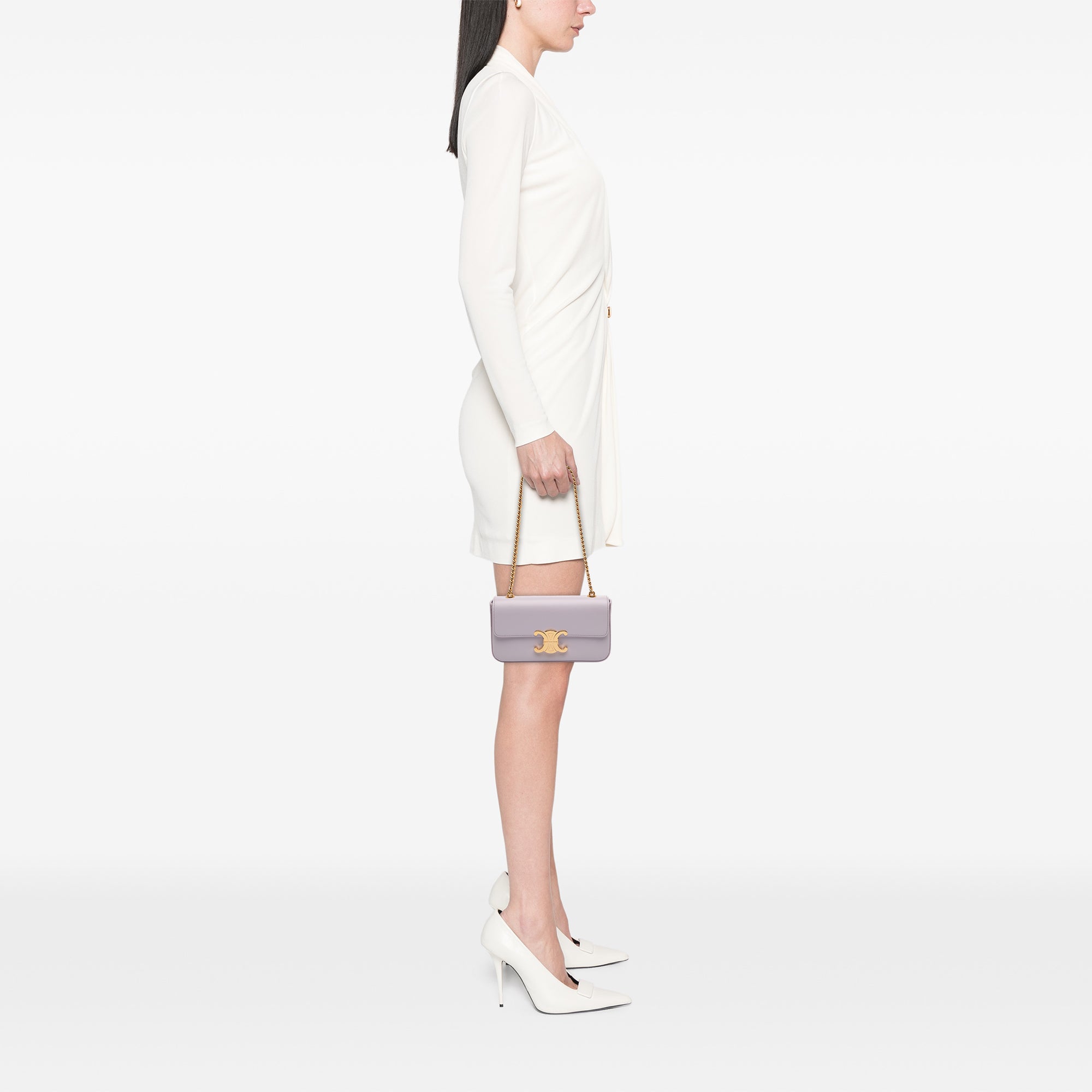 Im Inneren bietet das Hauptfach Platz für Essentials wie Smartphone, Kartenetui und Schlüssel, ergänzt durch ein praktisches Einsteckfach für kleinere Gegenstände. Dank der kompakten Form und der edlen Materialien eignet sich die Tasche für den Alltag mit stilvollem Anspruch ebenso wie für Abendtermine. Die Kombination aus Kalbsleder, polierter Hardware und reduzierten Linien macht dieses Modell zu einem vielseitigen Begleiter im modernen Celine-Stil.