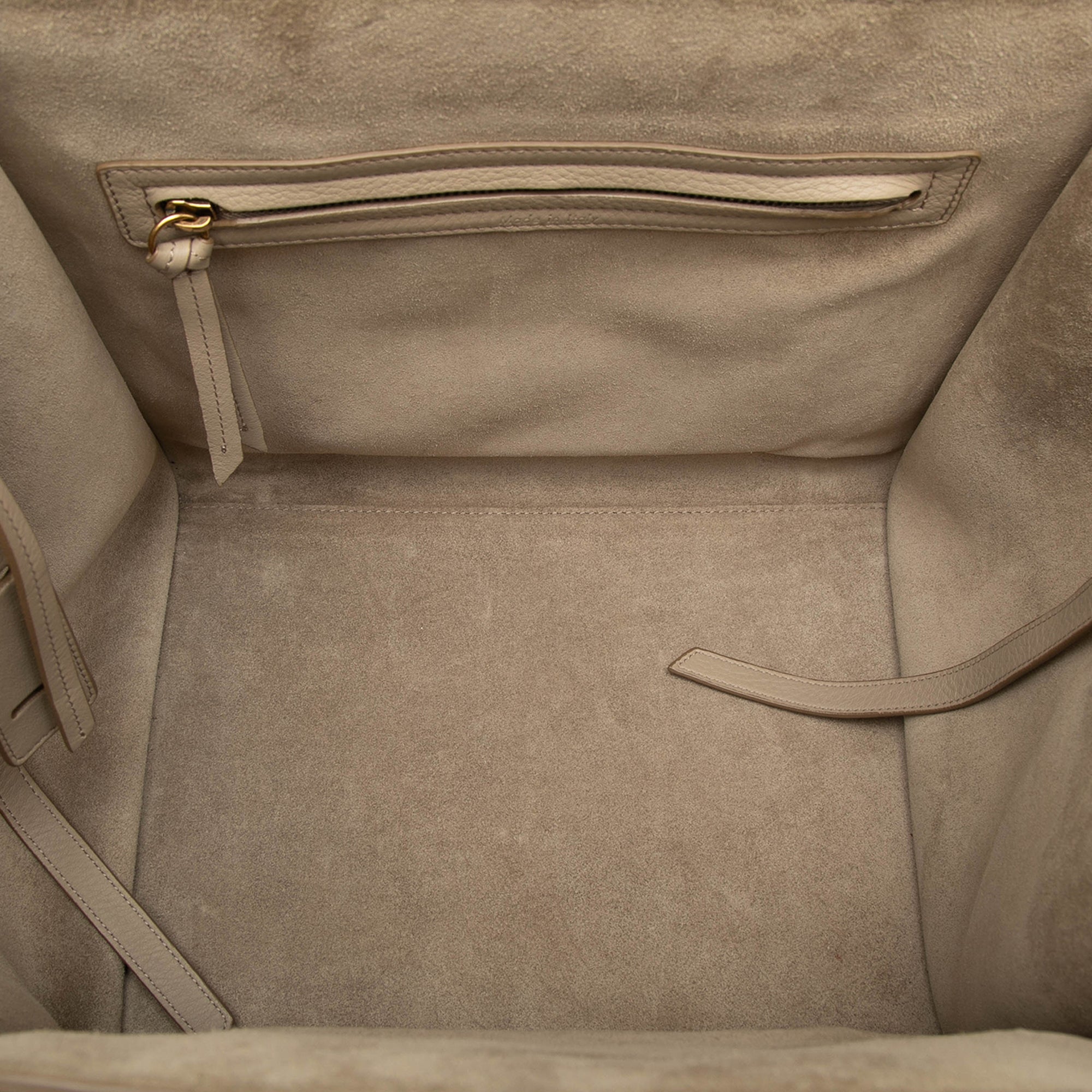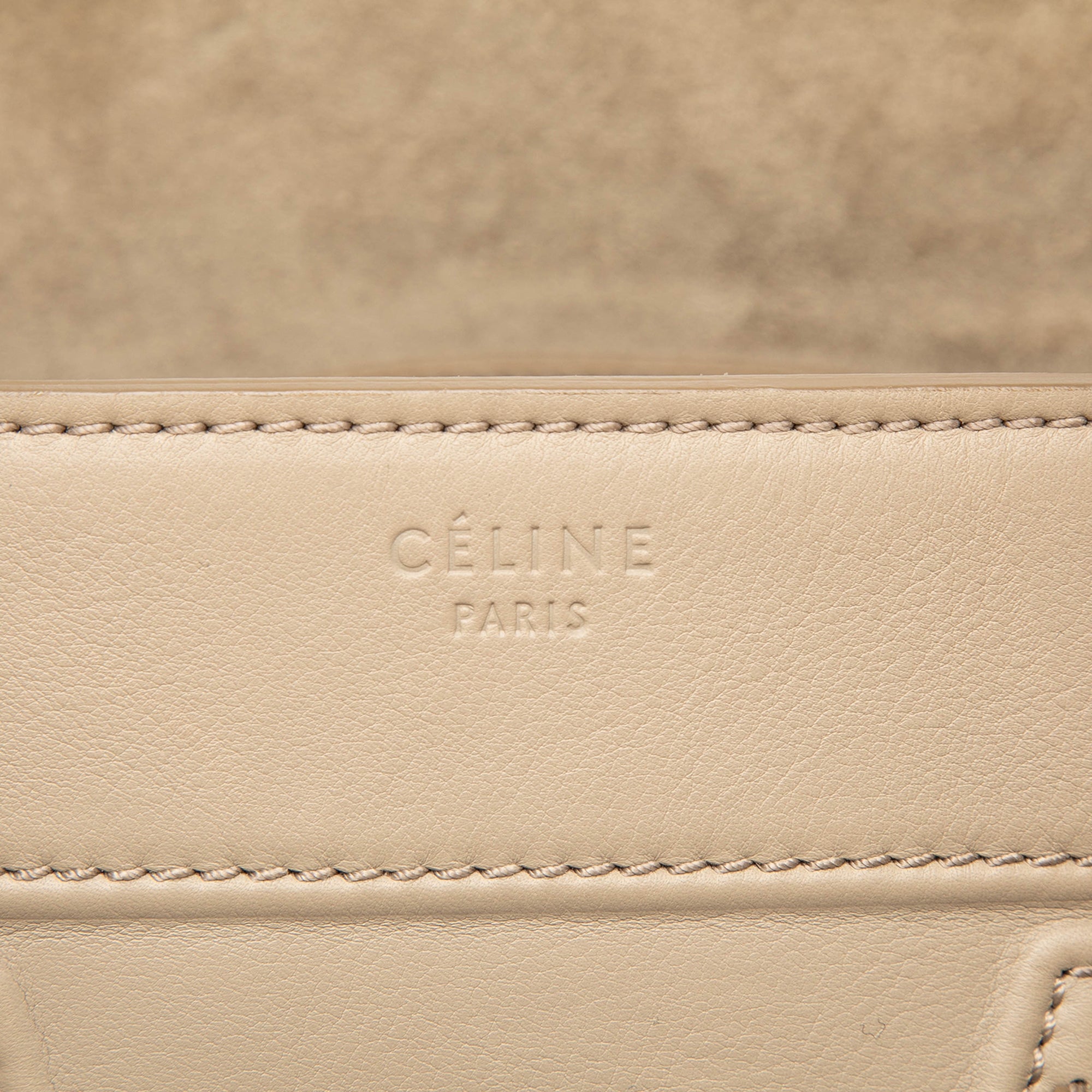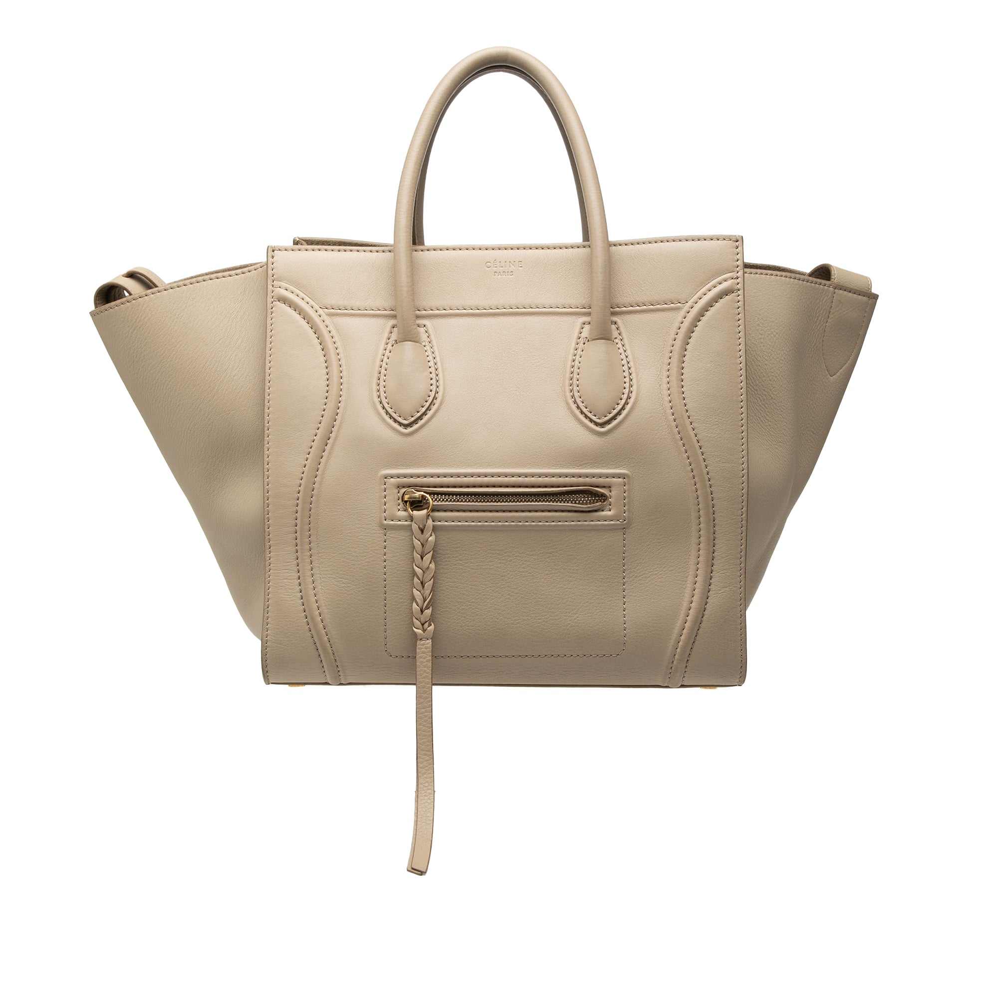 Ein praktisches Detail ist die vordere Reissverschlusstasche, die Essentials griffbereit haelt und die klare Linienfuehrung dezent akzentuiert. Im Inneren bietet ein Reissverschlussfach Ordnung fuer kleinere Gegenstaende, waehrend das Hauptfach Platz fuer Alltag und Business schafft. Als elegante Tote eignet sich das Modell fuer das Buero, Reisen oder City-Termine und verbindet Funktionalitaet mit dem typischen Celine-Minimalismus.