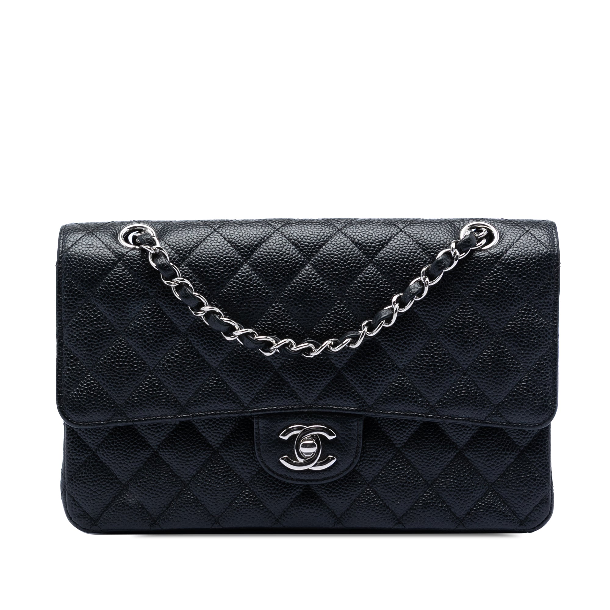 Chanel Classic Double Flap Medium Black Caviar Silver