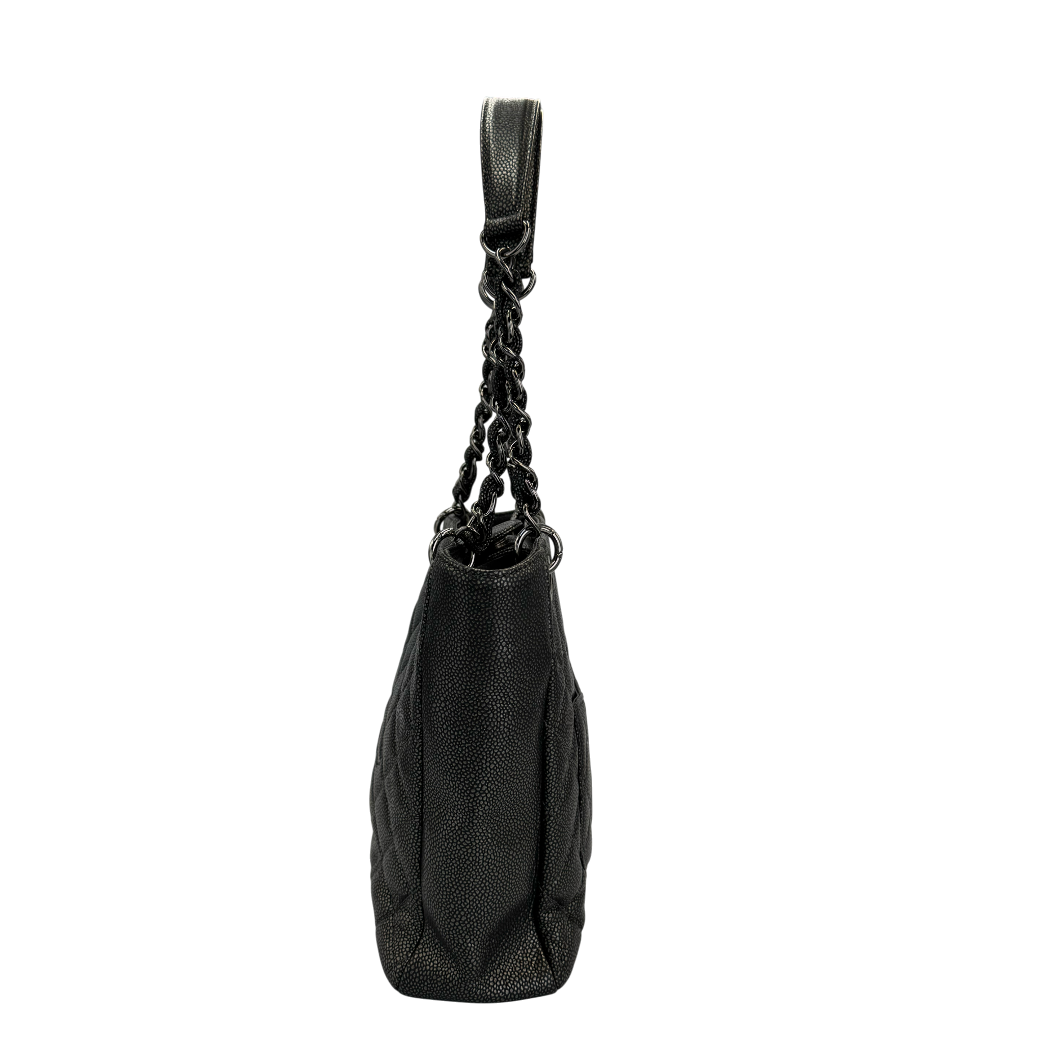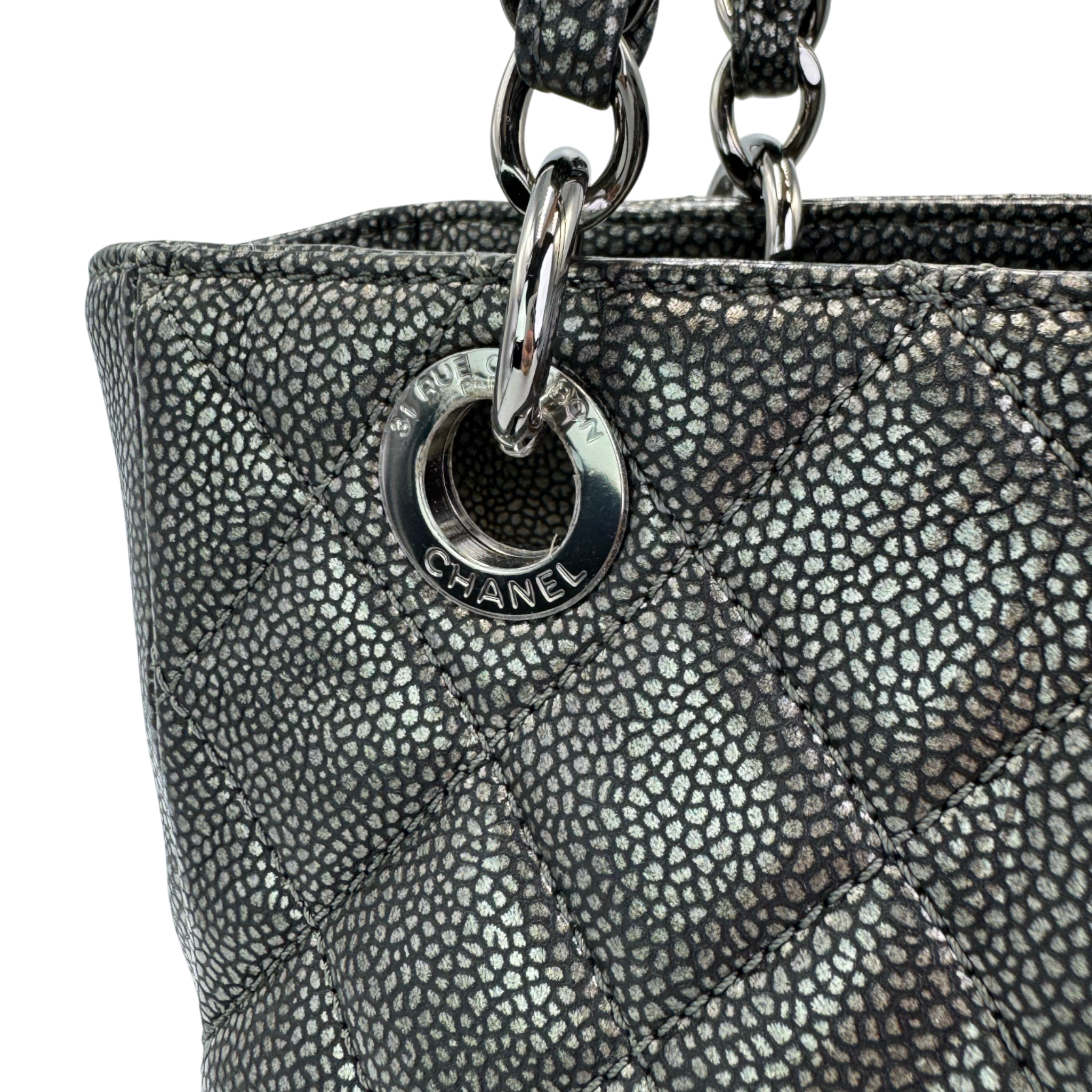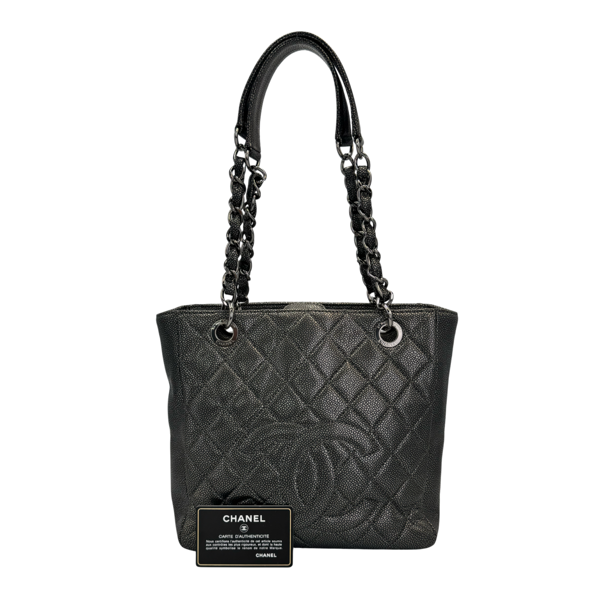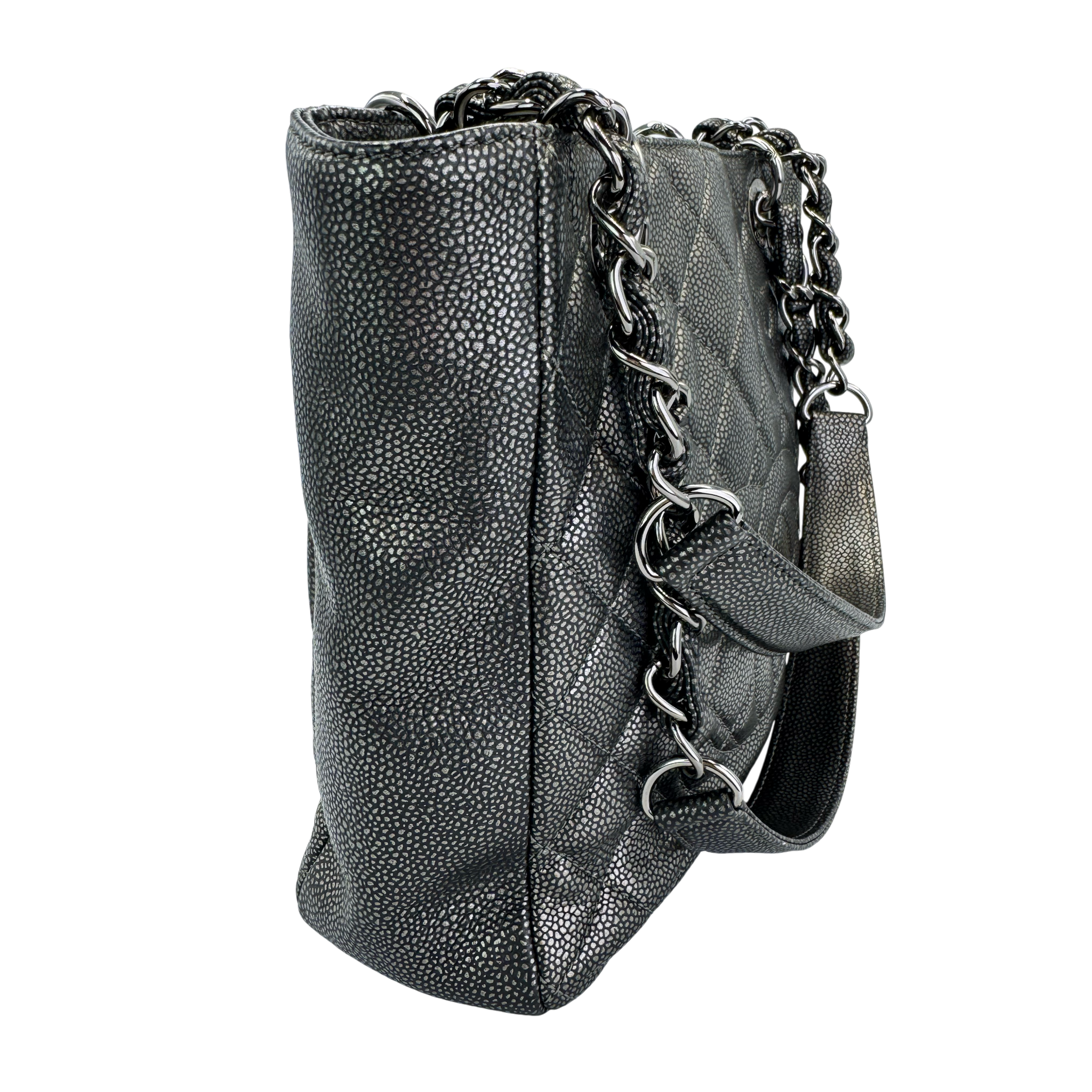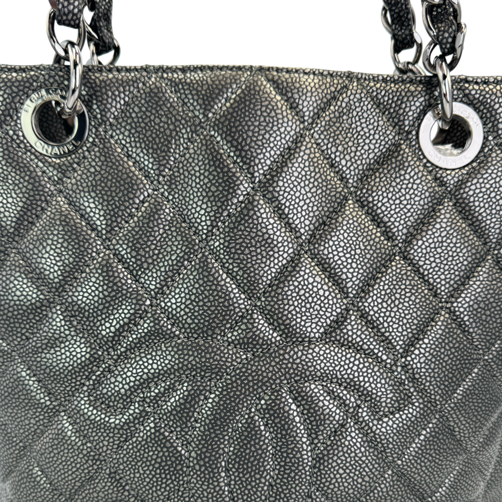 Chanel PST Petite Shopping Tote Black Caviar Silver