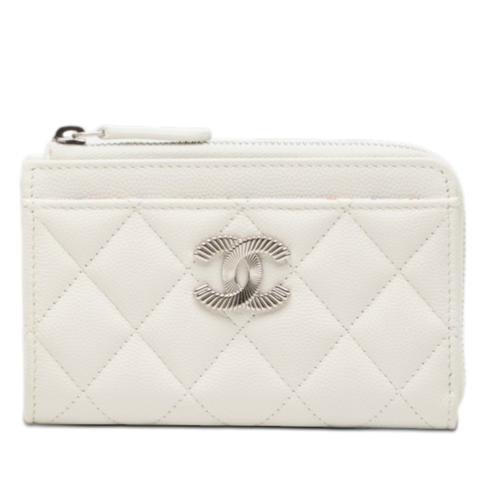 Chanel Zip Around Coin and Card Holder White Caviar
