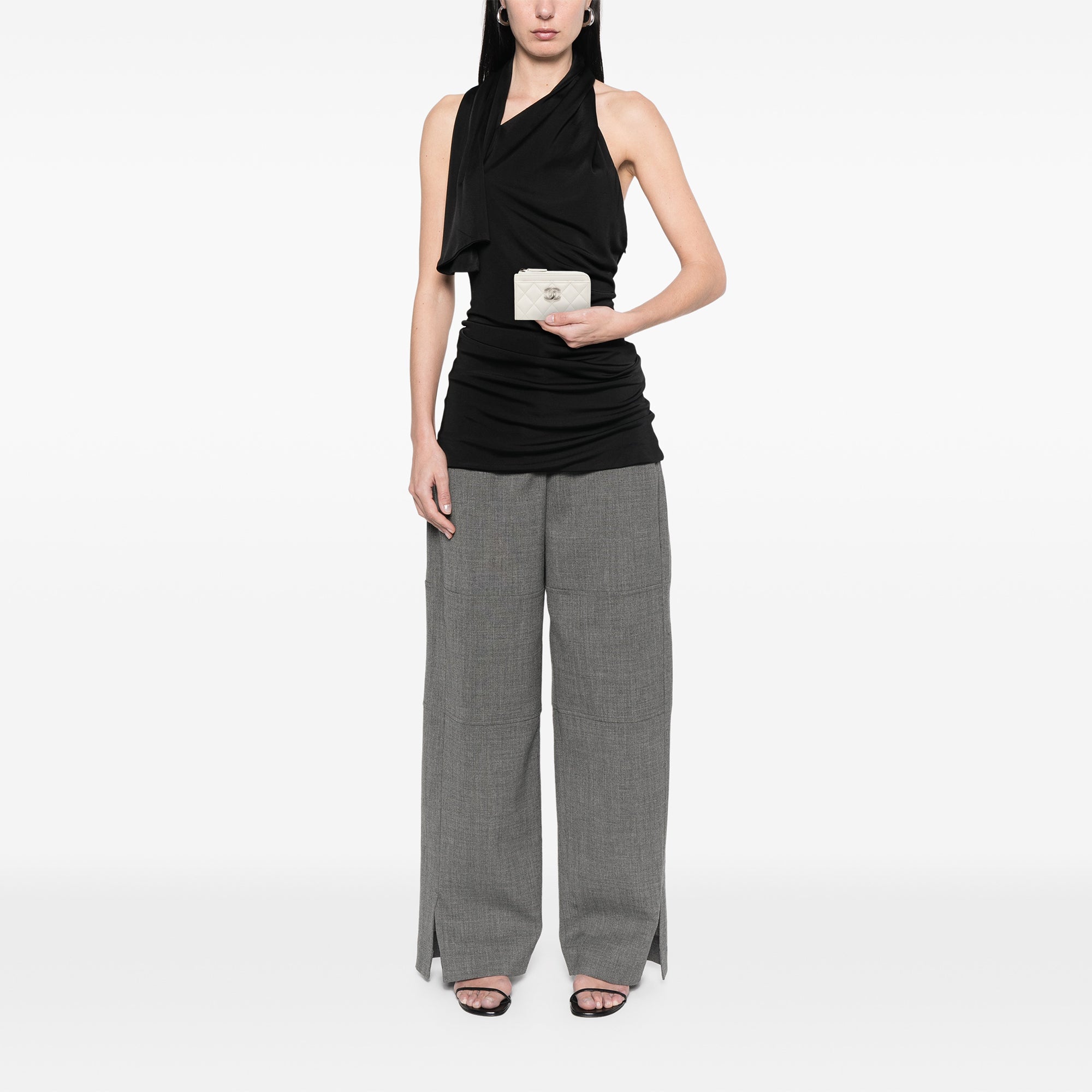 Der Chanel CC Quilted Caviar Zip Around Coin and Card Holder vereint die Codes des Hauses in einem kompakten Format. Das Design ist aus genarbtem Caviar-Leder gefertigt und mit der charakteristischen Rautensteppung sowie dem CC-Emblem akzentuiert. Die strukturierte Oberfläche wirkt elegant und zugleich alltagstauglich, während die präzise Verarbeitung eine klare, zeitlose Silhouette unterstreicht.