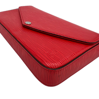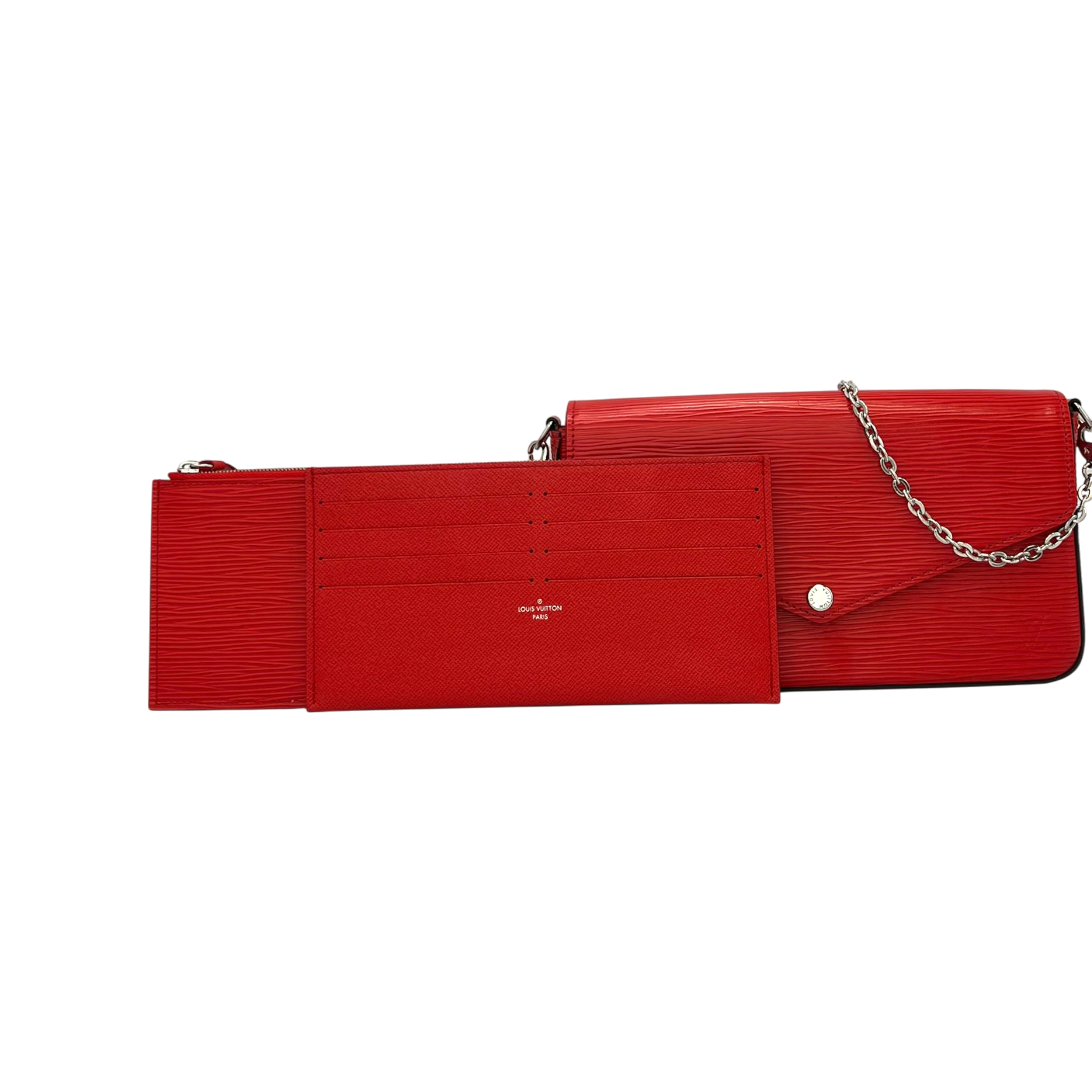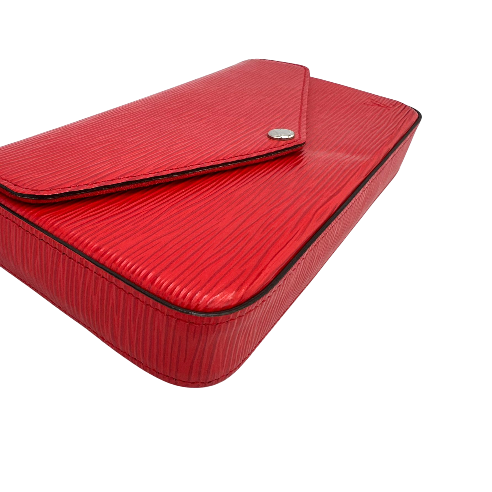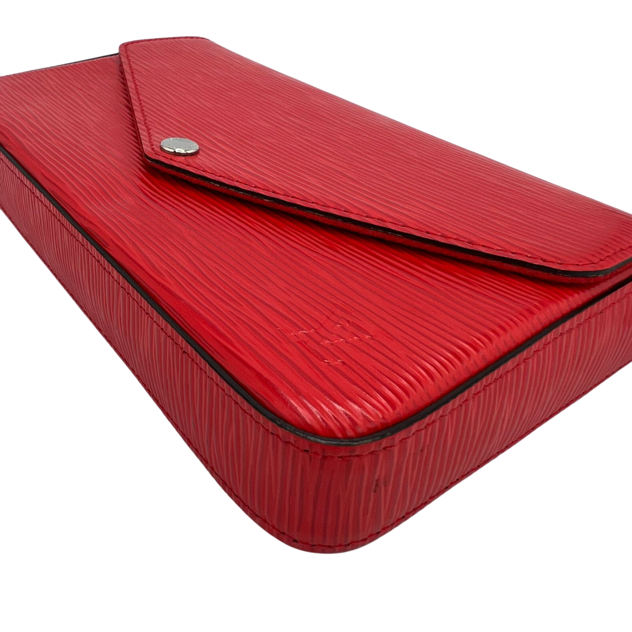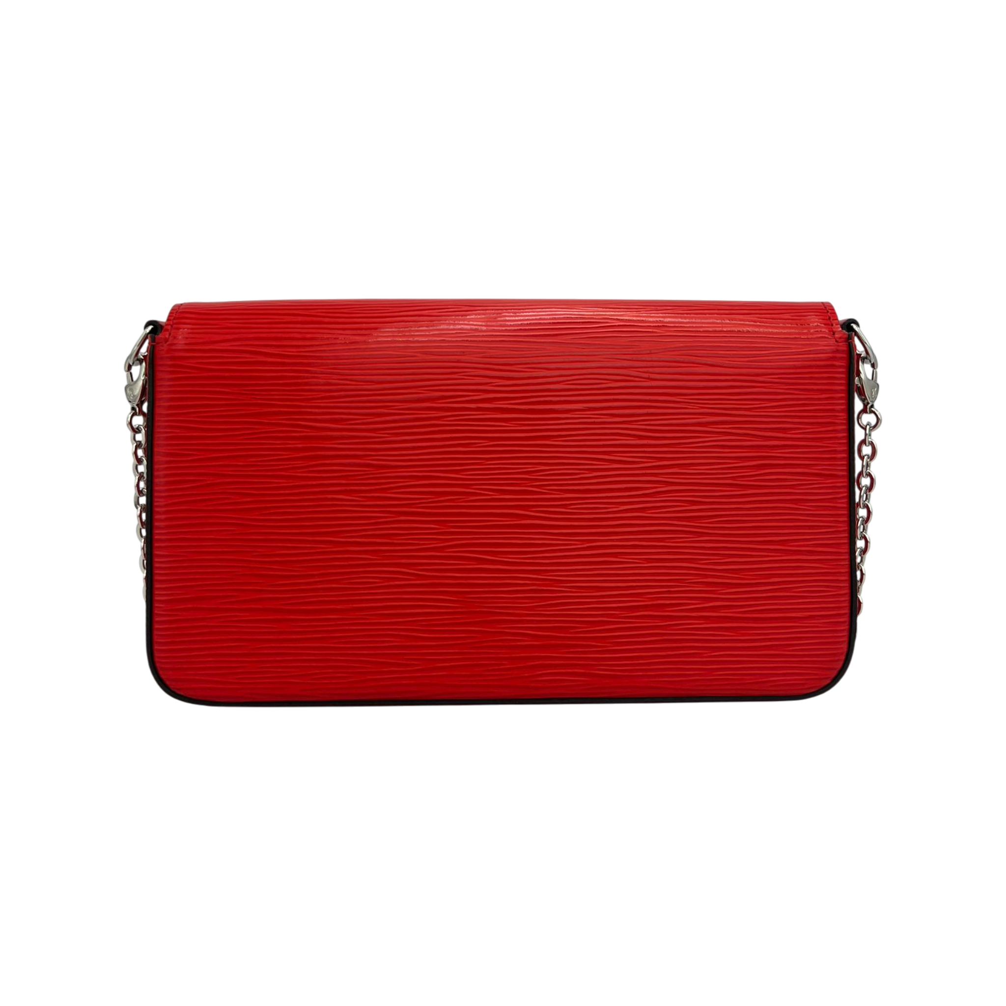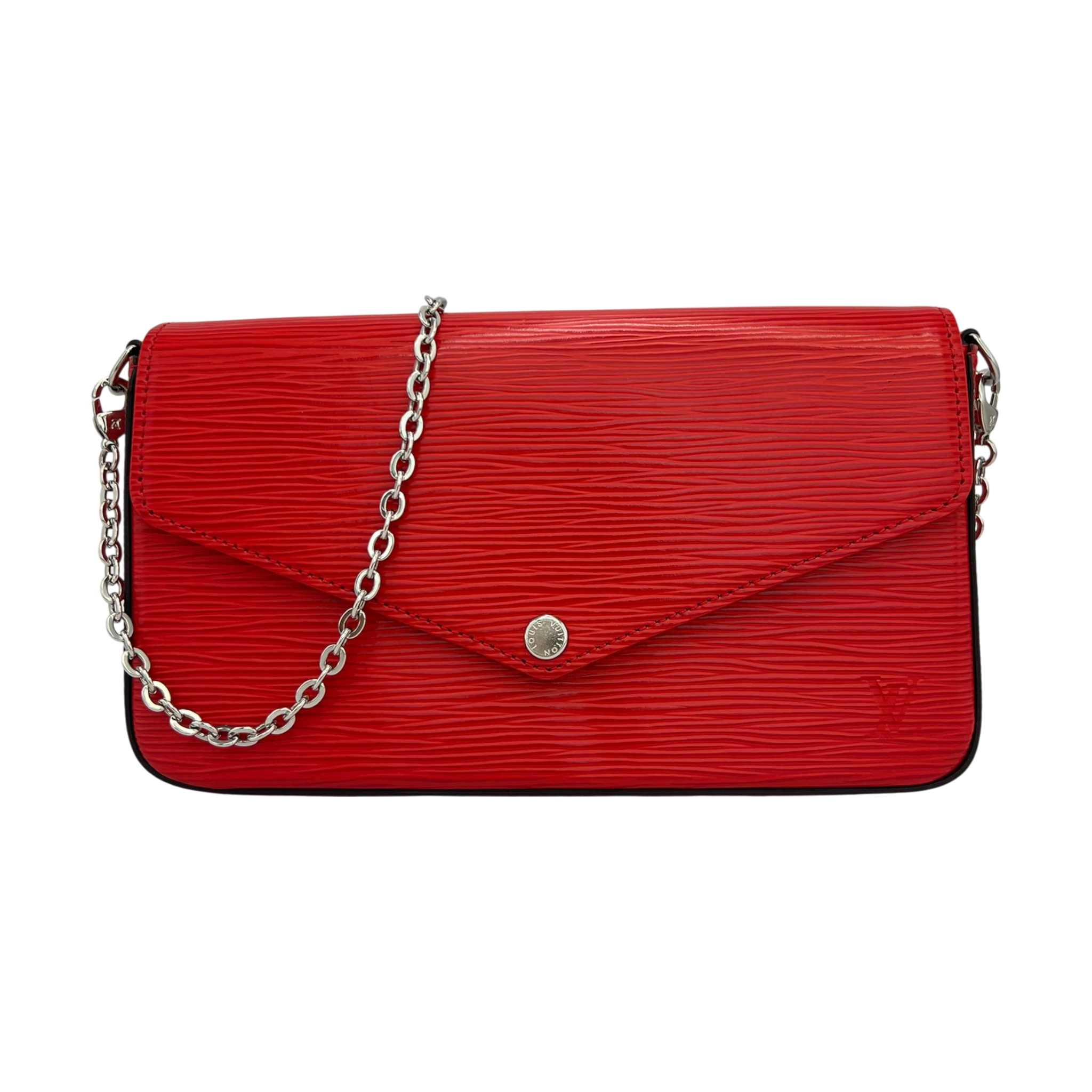 Die Louis Vuitton Félicie Pochette aus rotem Epi-Leder verbindet klare Linien mit einem modernen, strukturierten Finish. Der kräftige Rotton setzt einen stilvollen Akzent und macht dieses Modell zu einem vielseitigen Begleiter für den Alltag wie auch für den Abend.