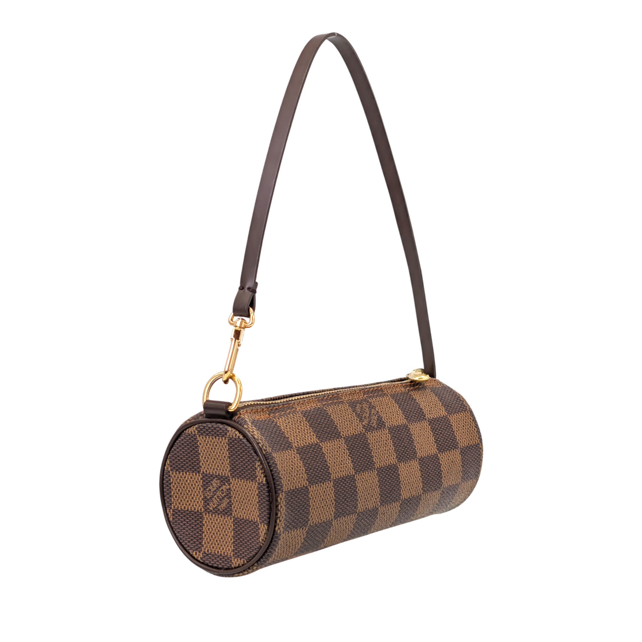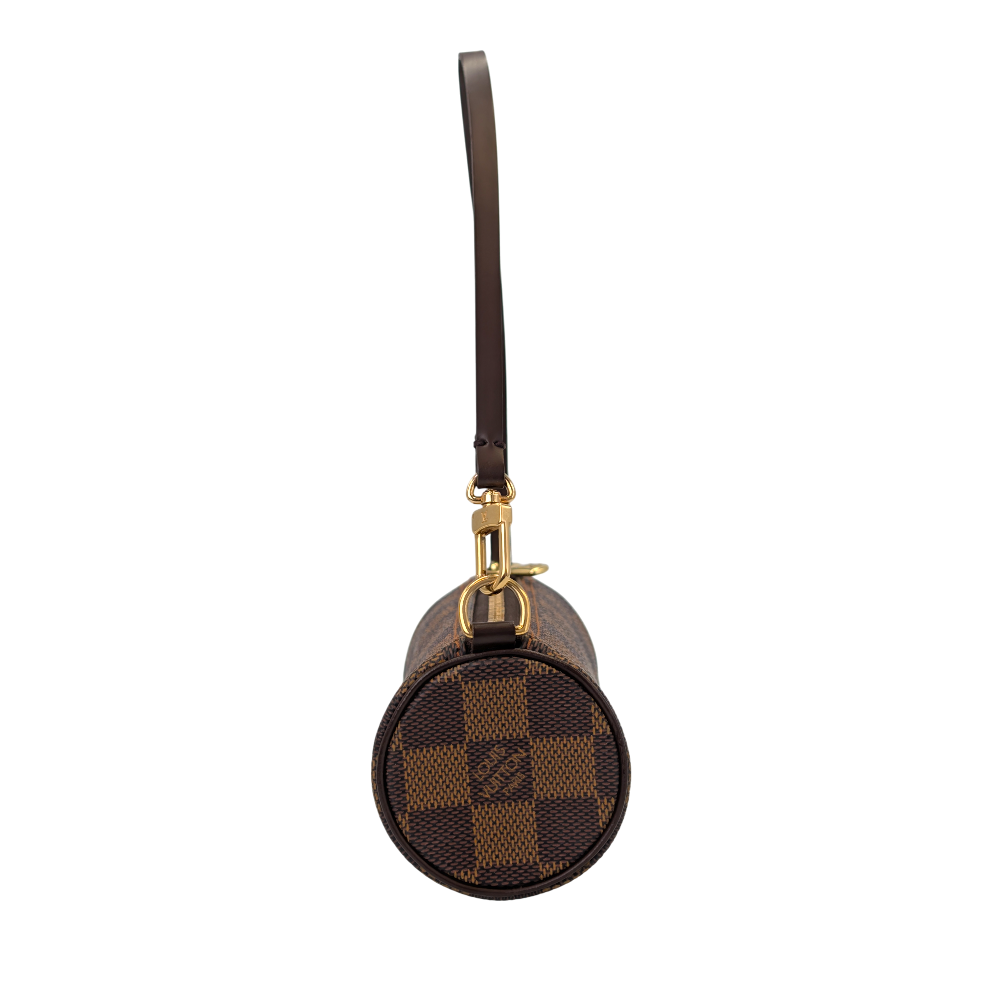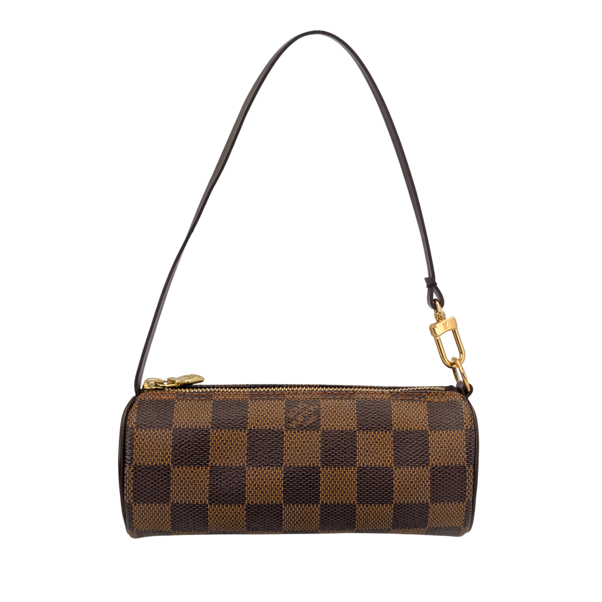 Diese Louis Vuitton Papillon Pochette aus dem ikonischen Damier-Ebene-Canvas ist ein zeitloser Klassiker mit hohem Wiedererkennungswert. Die charakteristische zylindrische Form verleiht der Tasche ihren eleganten, zugleich verspielten Look, während das beschichtete Canvas besonders robust und alltagstauglich ist. Die dunklen Lederdetails und die goldfarbene Hardware runden das Design harmonisch ab und machen die Tasche vielseitig kombinierbar.