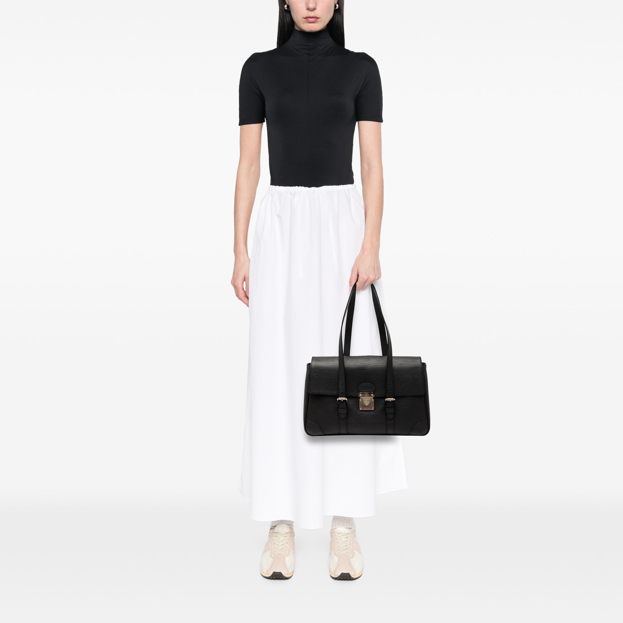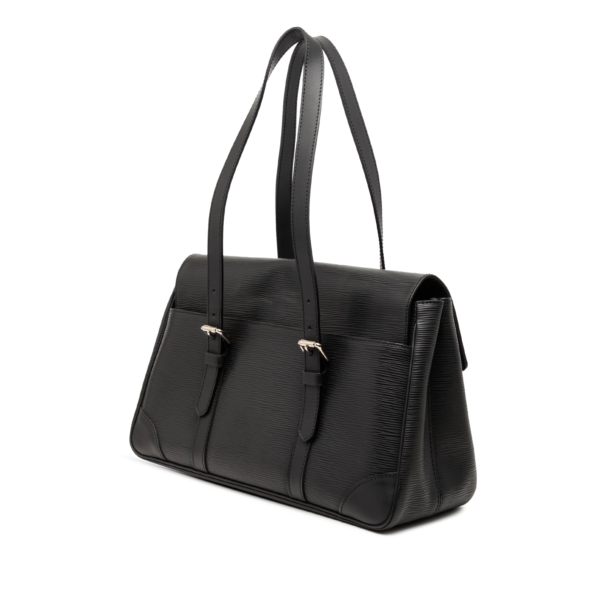 Die Louis Vuitton Epi Segur MM verbindet strukturierte Eleganz mit klarer Funktionalität. Charakteristisch ist der Korpus aus Epi-Leder mit seiner dezenten, geprägten Textur, die dem Modell eine gepflegte, formstabile Silhouette verleiht. Ein Überschlag mit silberfarbenem Schlossverschluss setzt einen ruhigen, präzisen Akzent, während flache Lederträger das Tragen an der Schulter oder am Arm ermöglichen. Ein äusseres Steckfach auf der Rückseite ergänzt das reduzierte Design um einen diskreten Zugriff.
