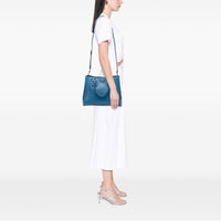 Für den Alltag wie auch für Business-Termine bietet das Modell eine durchdachte Funktionalität. Der offene Zugang mit Druckknopfverschluss erleichtert das schnelle Verstauen, ergänzt durch ein übersichtlich gegliedertes Inneres mit Reissverschluss- und Einsteckfächern. Ein abnehmbarer, flacher Leder-Schulterriemen ermöglicht variablen Tragekomfort, vom klassischen Handcarry bis zur entspannten Schulter- oder Crossbody-Option.