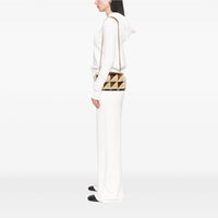 Die Yves Saint Laurent Jamie Medium Tasche besteht aus einem Patchwork aus weichem Veloursleder und luxuriösem Lammfell. Sie verfügt über Kettenriemen mit Leder-Schulterpolstern, eine Überschlagklappe mit Magnetverschluss sowie Innenfächer mit Reißverschluss und Steckfächern für eine praktische Organisation. Alle Beschläge und der Verschluss sind hochwertig verarbeitet und runden das edle Design harmonisch ab.