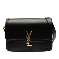 Mit den kultigen Initialen aus goldfarbenem Metall auf der Vorderseite setzt die Solferino Crossbody Bag den klassischen französischen Stil und die Schlichtheit von Yves Saint Laurent fort. Sie besteht aus schwarzem Leder und einer goldfarbenen Akzenten. Das Innere ist groß genug, um Ihre Abendutensilien und mehr zu verstauen. Ein echter Hingucker!