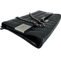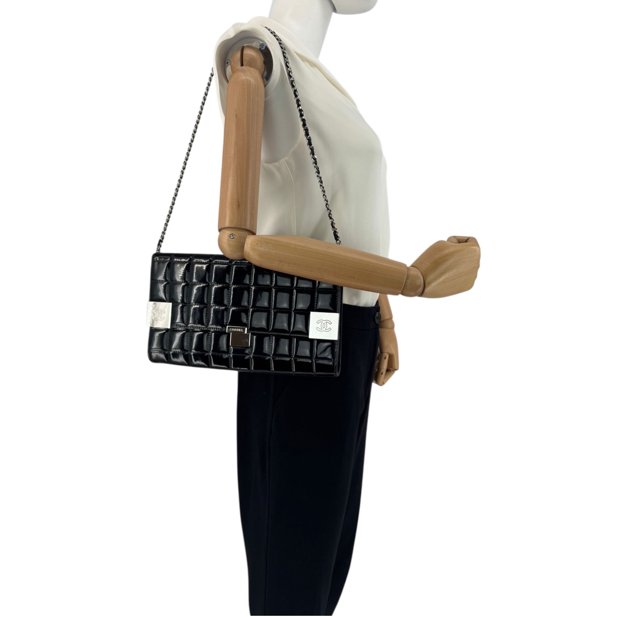 Chanel Chocolate Bar Clutch on Chain Black Patent Silver
