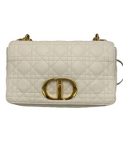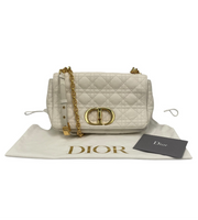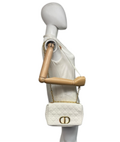 Dior Caro Medium White Cannage Leather Gold