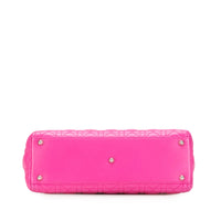 Die Lady Dior Cannage ist ein klassischer Begleiter. Mit ihrem gesteppten Lammleder und den ledernen Details an den Seiten, am Verschluss und am Henkel steht sie für schlichte Eleganz. Ihren Namen trägt sie zu Ehren der Princess of Wales, Lady Diana, welche oft mit dieser Tasche gesehen wurde. Die Tasche kann bequem in der Hand oder um die Schulter getragen werden. Sie hat gerollte Lederhenkel, eine offene Oberseite mit Druckknopfverschluss, ein inneres Reissverschlussfach und innere Reissverschluss- und Steckfächer.
