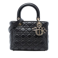 Dior Lady Dior Medium Black Lambskin Gold