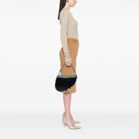 Die Saddle Bag von Dior ist eine der beliebtesten Taschen des Hauses mit ihren verschiedenen Varianten und ihrer ungewöhnlichen Form. Diese mittelgrosse Tasche ist aus schwarzem Kalbsleder gefertigt. Die Frontklappe ist mit einem schwarzen D-Monogramm verziert, das die Zugehörigkeit zum französischen Traditionshaus Dior verrät. Mit ihrem flachen Lederhenkel lässt sich die Tasche am besten in der Hand oder am Arm tragen.