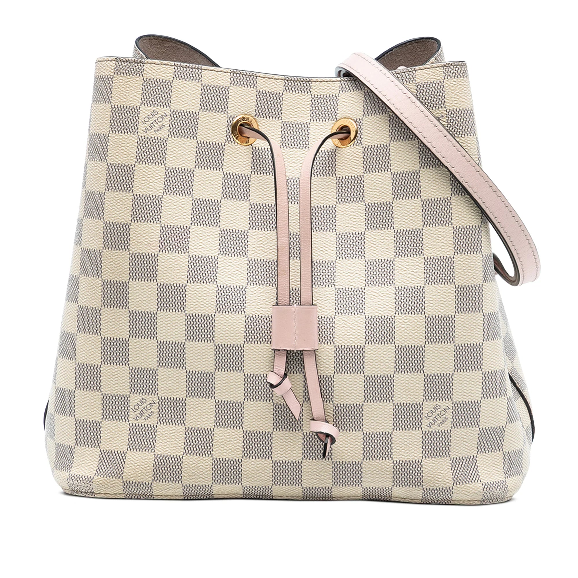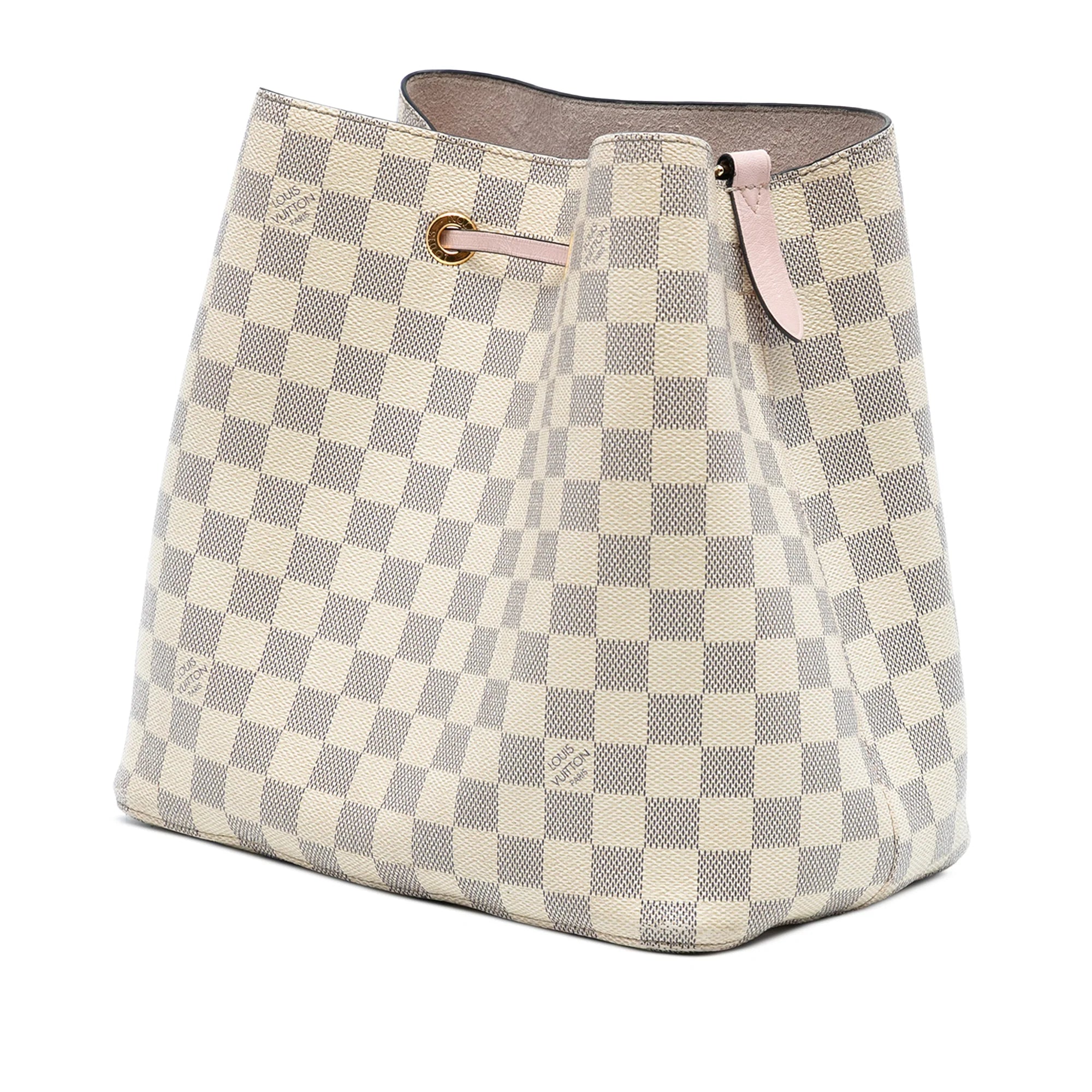 Die NéoNoé Beuteltasche ist eine wahre Ikone des Hauses Louis Vuitton und greift ein Design von Gaston-Louis Vuitton auf. Das Original wurde entworfen, um Champagnerflaschen stilvoll zu transportieren. Diese modische Version in luxuriösem Damier Azur Canvas zeichnet sich durch eine elegante Form sowie Lederbesätze in der Farbe Rosa aus. Darüber hinaus bietet sie mit einem abnehmbaren Griff und einem abnehmbaren, verstellbaren Schulterriemen verschiedene Tragemöglichkeiten, die je nach Stimmung oder Anlass angepasst werden können.