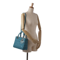 Dior Lady Dior Medium Blue Cannage Lambskin Silver