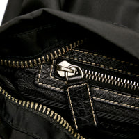 Diese coole Prada Tessuto ist aus trendigem schwarzem Nylon gefertigt. Die Tasche kann dank des Schulterriemens bequem crossbody getragen werden. Die silbernen Details geben der Tasche das gewisse Etwas. Auf der Vorderseite befindet sich ein zusätzliches Reissverschlussfach.