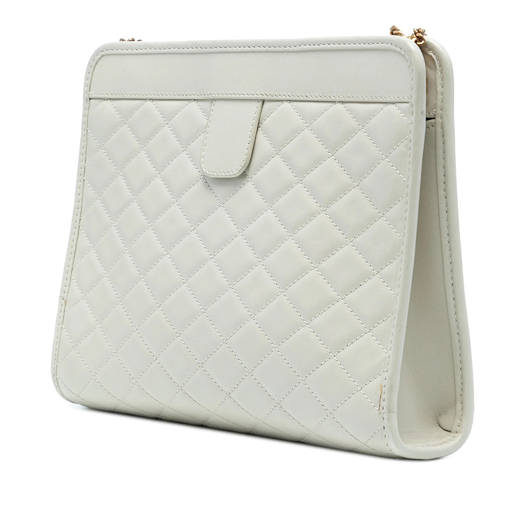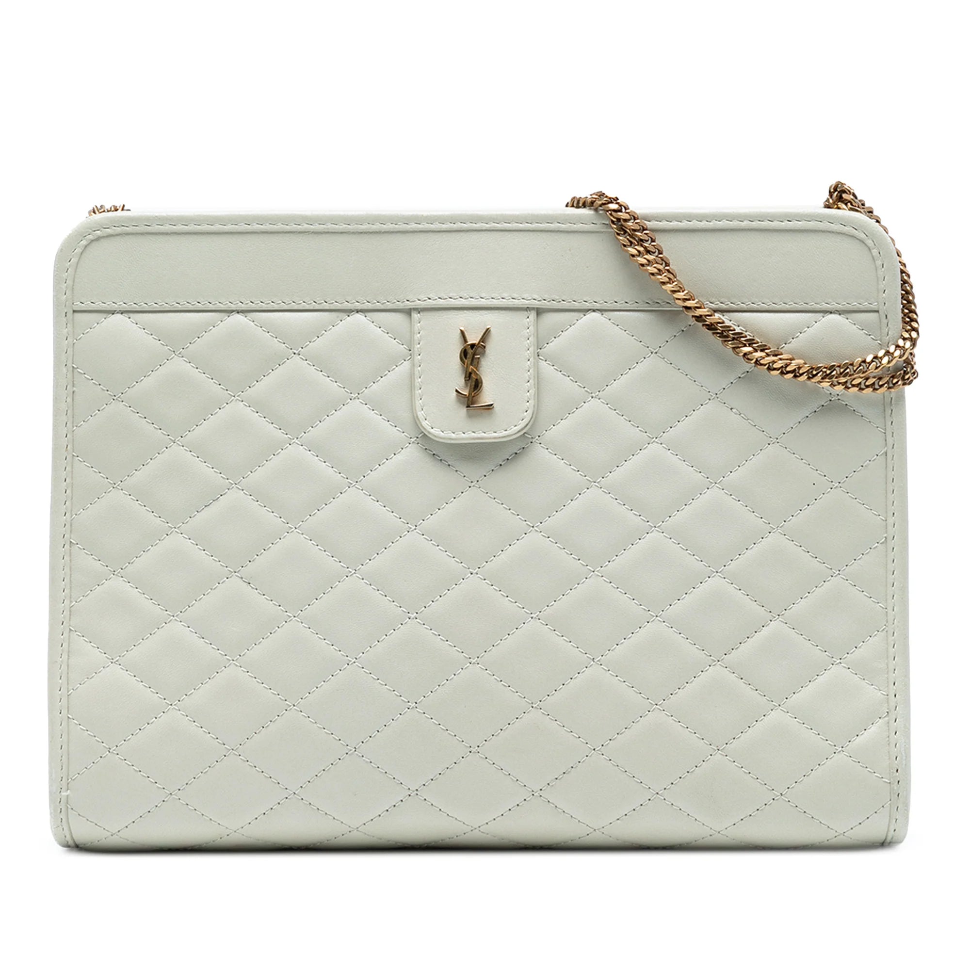 Yves Saint Laurent Baby Victoire Clutch on Chain White Monogram Lambskin