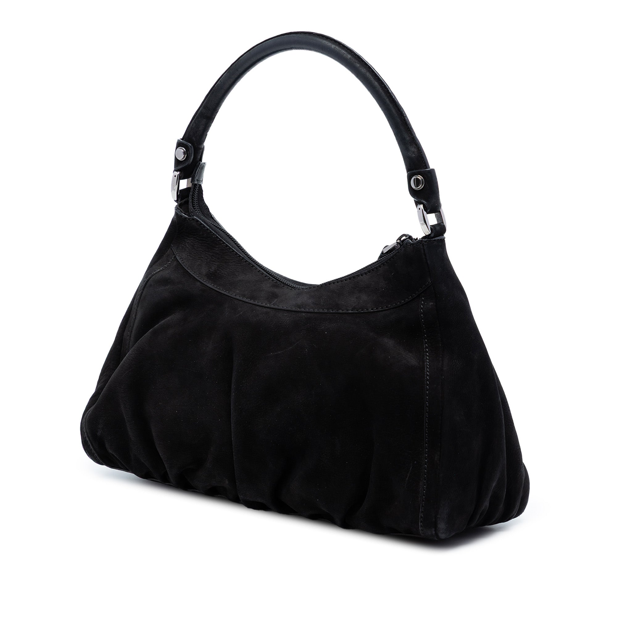 The Gucci Suede Abbey D-Ring Shoulder Bag embodies understated elegance with a distinctive silhouette. The body, crafted from soft suede, is harmoniously complemented by smooth leather details, while the rolled shoulder strap offers a comfortable grip and classic lines. A defining feature of the Abbey line is the D-ring hardware, which lends structure to the design while adding a subtle accent.