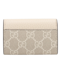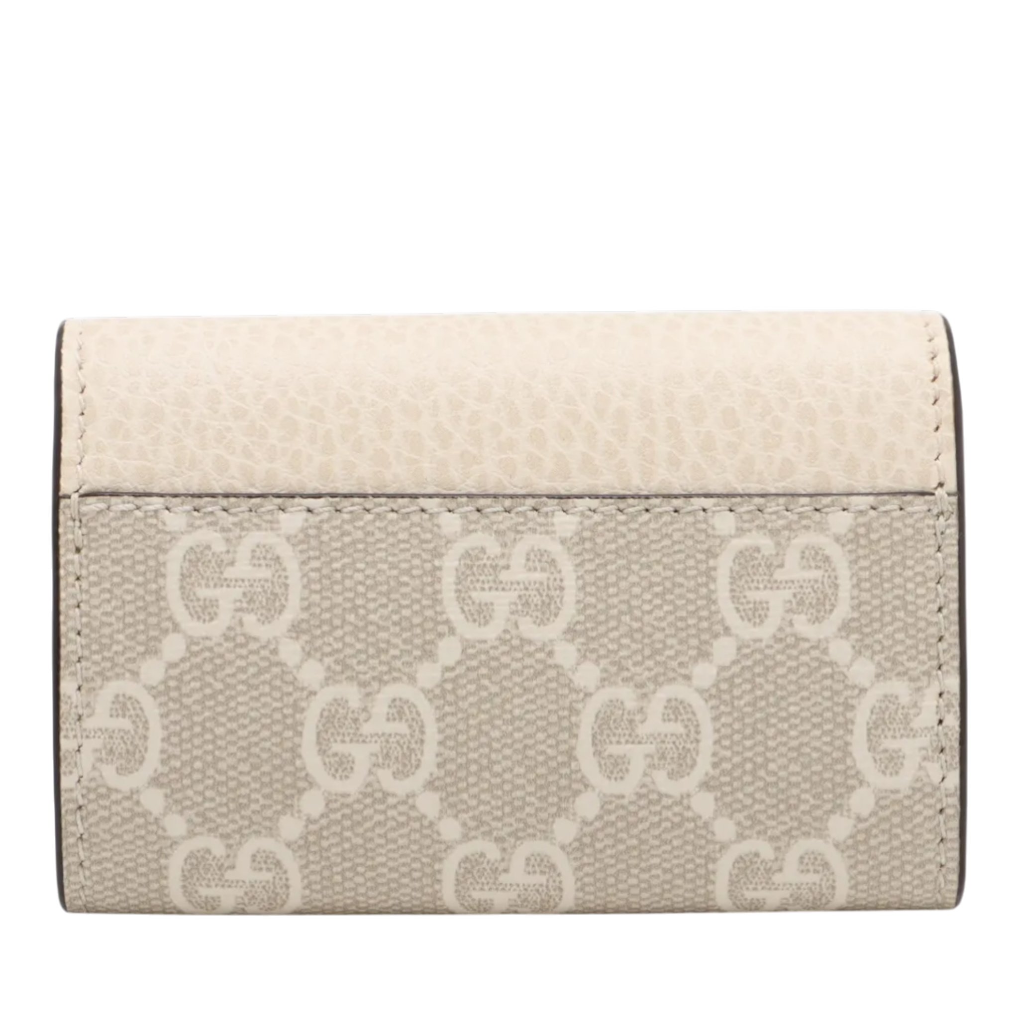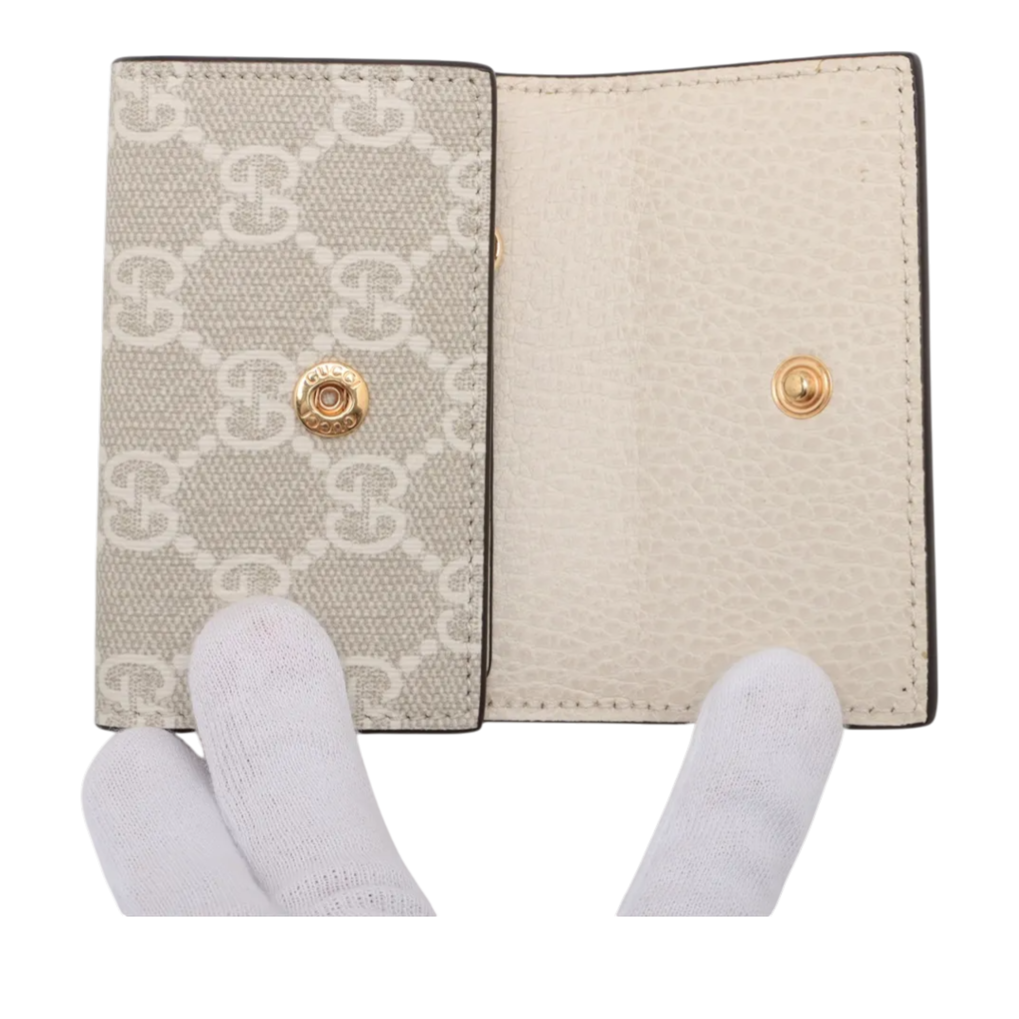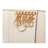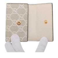 This elegant Gucci key case combines iconic design with everyday practicality. Made from the classic GG Supreme canvas in beige and ecru and complemented by fine-grained leather in light cream, the case looks timeless, elegant and easy to combine. The gold-colored GG logo on the front adds a luxurious accent without being intrusive.