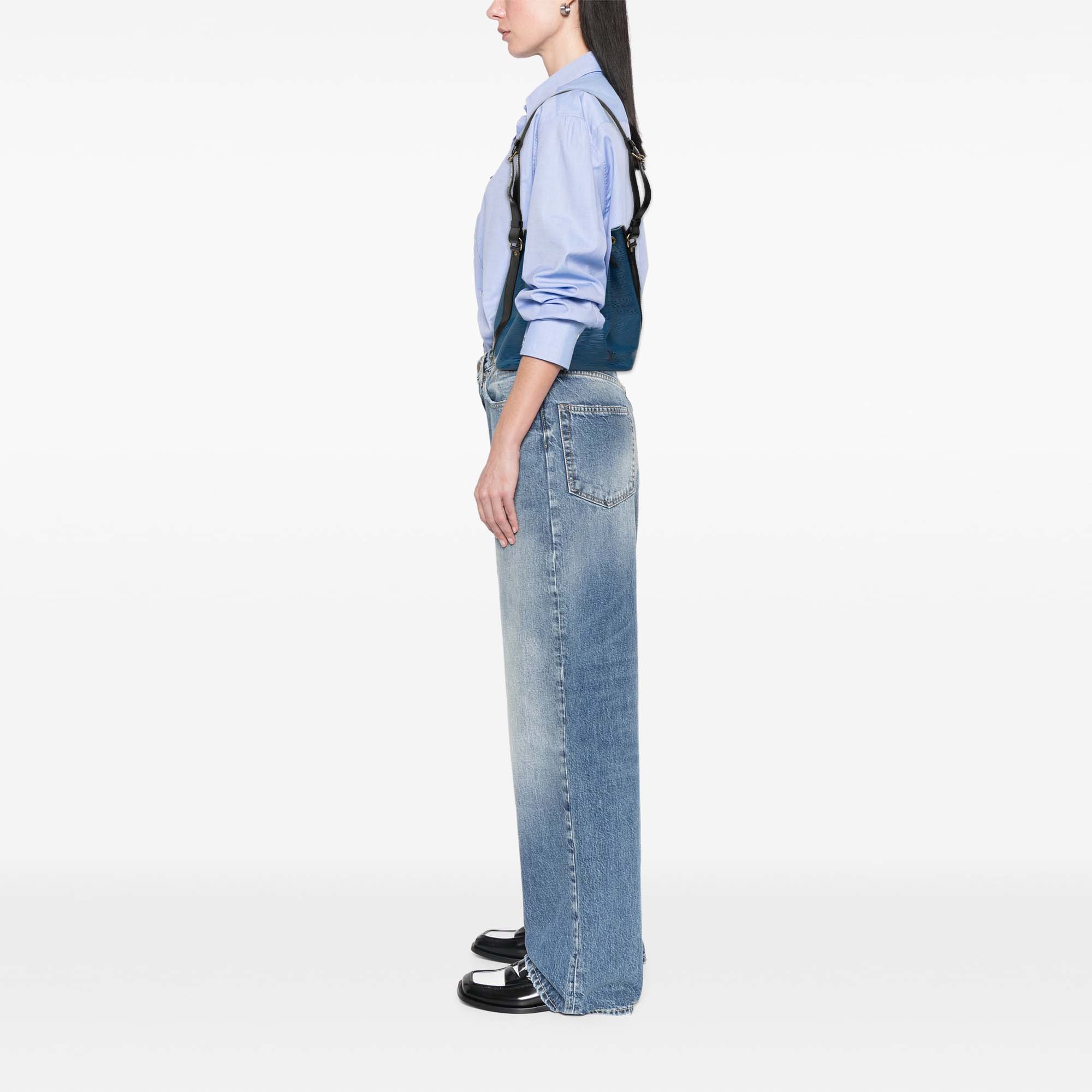 The Louis Vuitton Epi Petit Bicolor Noé reimagines the classic bucket bag in a compact, structured design. A defining feature is the embossed Epi leather with its fine, linear grain, which gives the model a clean silhouette and an elegant presence. The two-tone design creates a subtle contrast and emphasizes the graphic effect, while the leather details round out the high-quality overall impression.
