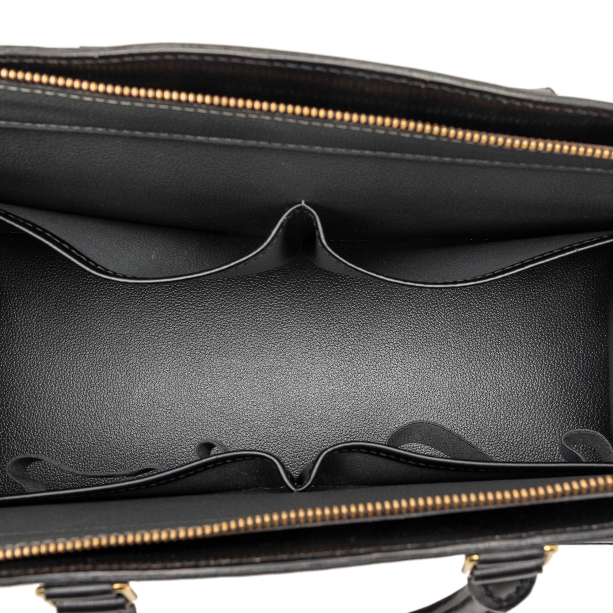Condition: The bag has light stains in several places on the outside, and the corners show slight wear. The strap has slight creases, minor stains, and wear along the seam. The hardware and zipper have fine scratches, and on the inside, there are light stains on the lining and in the inner pocket.