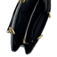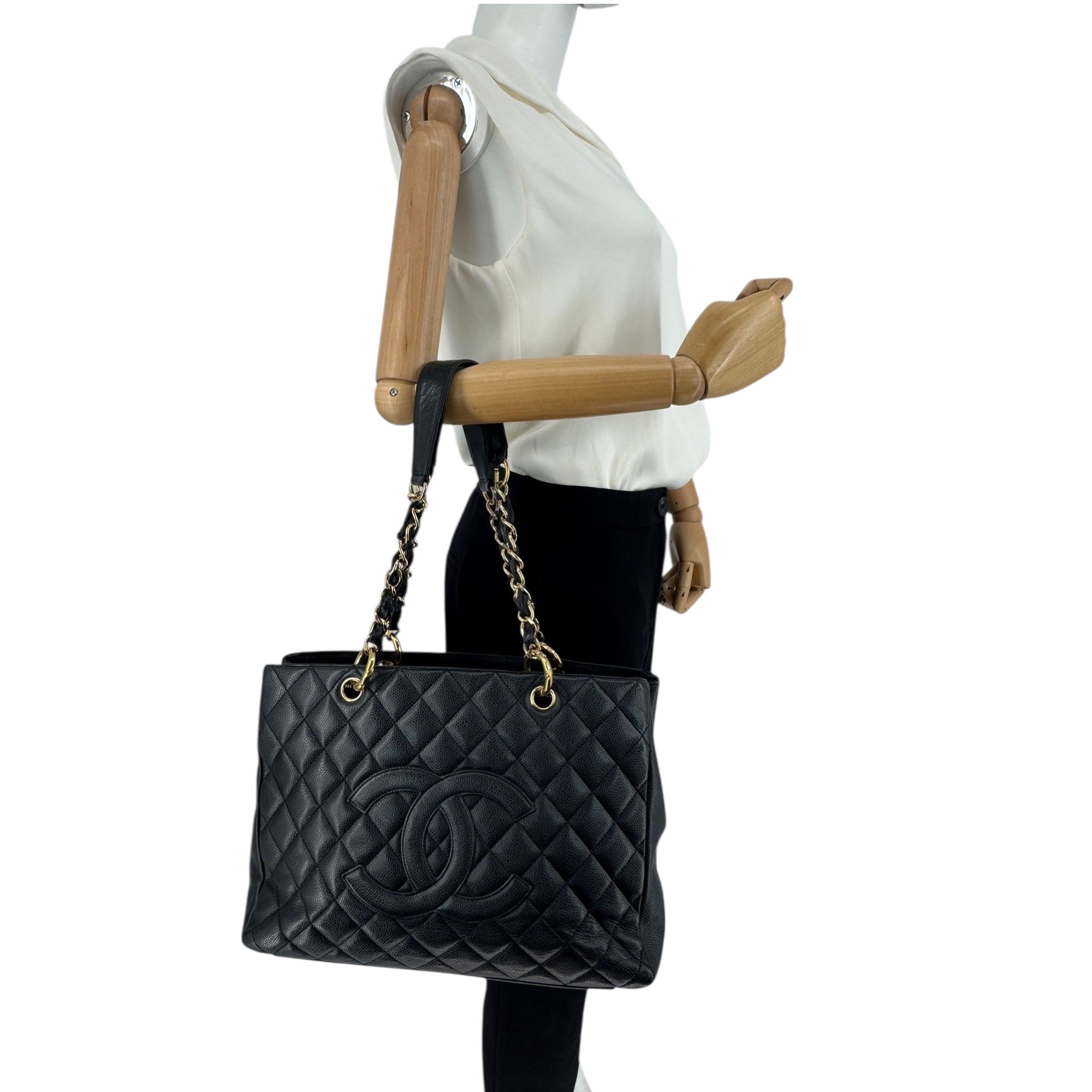 The Chanel Grand Shopping Tote in Caviar Leather is a classic, which unfortunately has not been manufactured since 2015. The simple black of the robust Caviar The leather is wonderfully complemented by the golden shine of the hardware. There is a practical open compartment on the back. The interior is very versatile with two compartments which are separated by a zipper compartment in the middle. There is another zippered compartment on one side and an open pocket on the other.