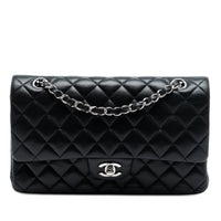 Chanel Classic Double Flap Medium Black Lambskin Silver