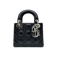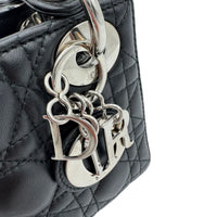An elegant Lady Dior Mini in soft black lambskin - the epitome of timeless sophistication. The classic design is beautifully complemented by the shoulder strap with fine studs in pink, silver and gold, giving the Bag a modern, playful accent.