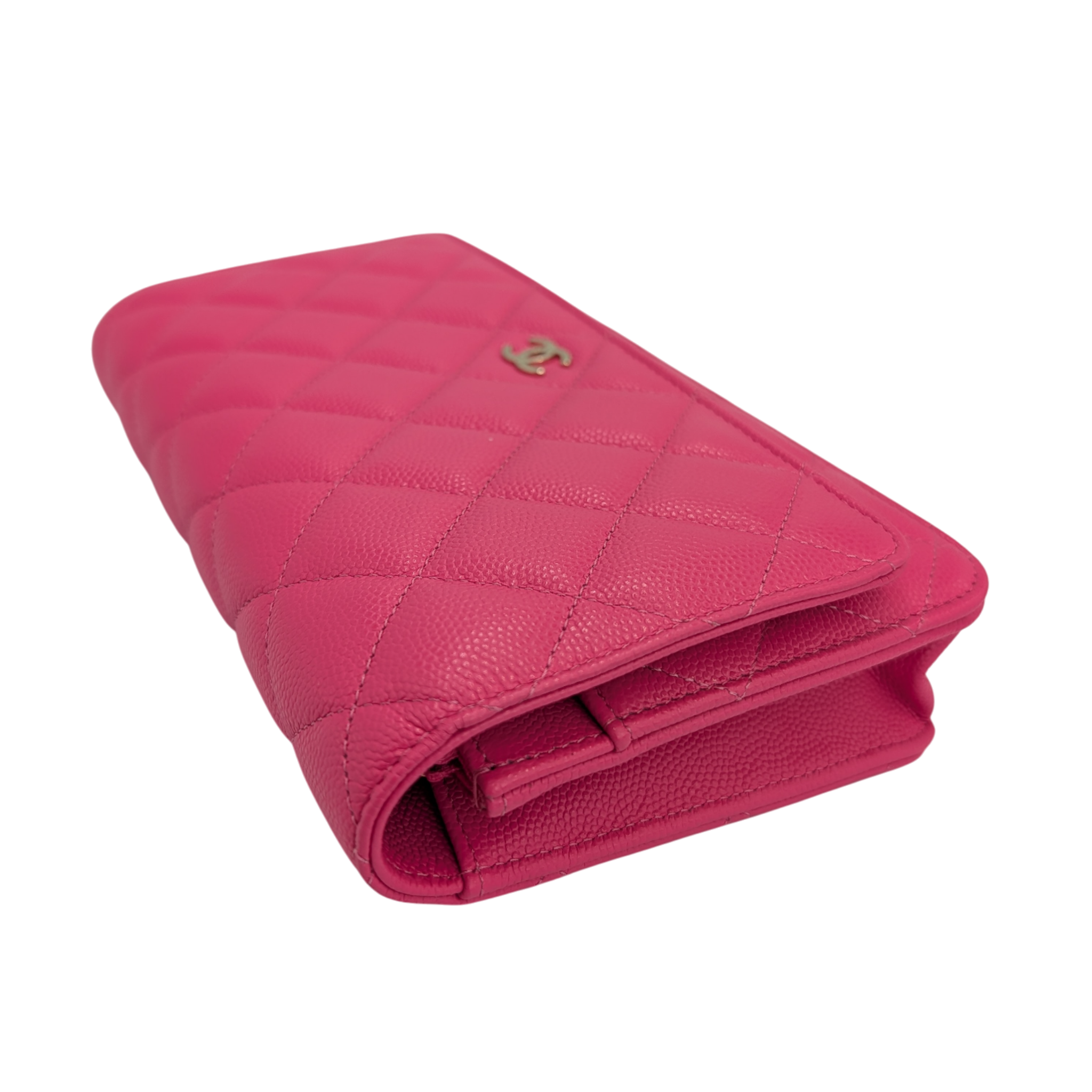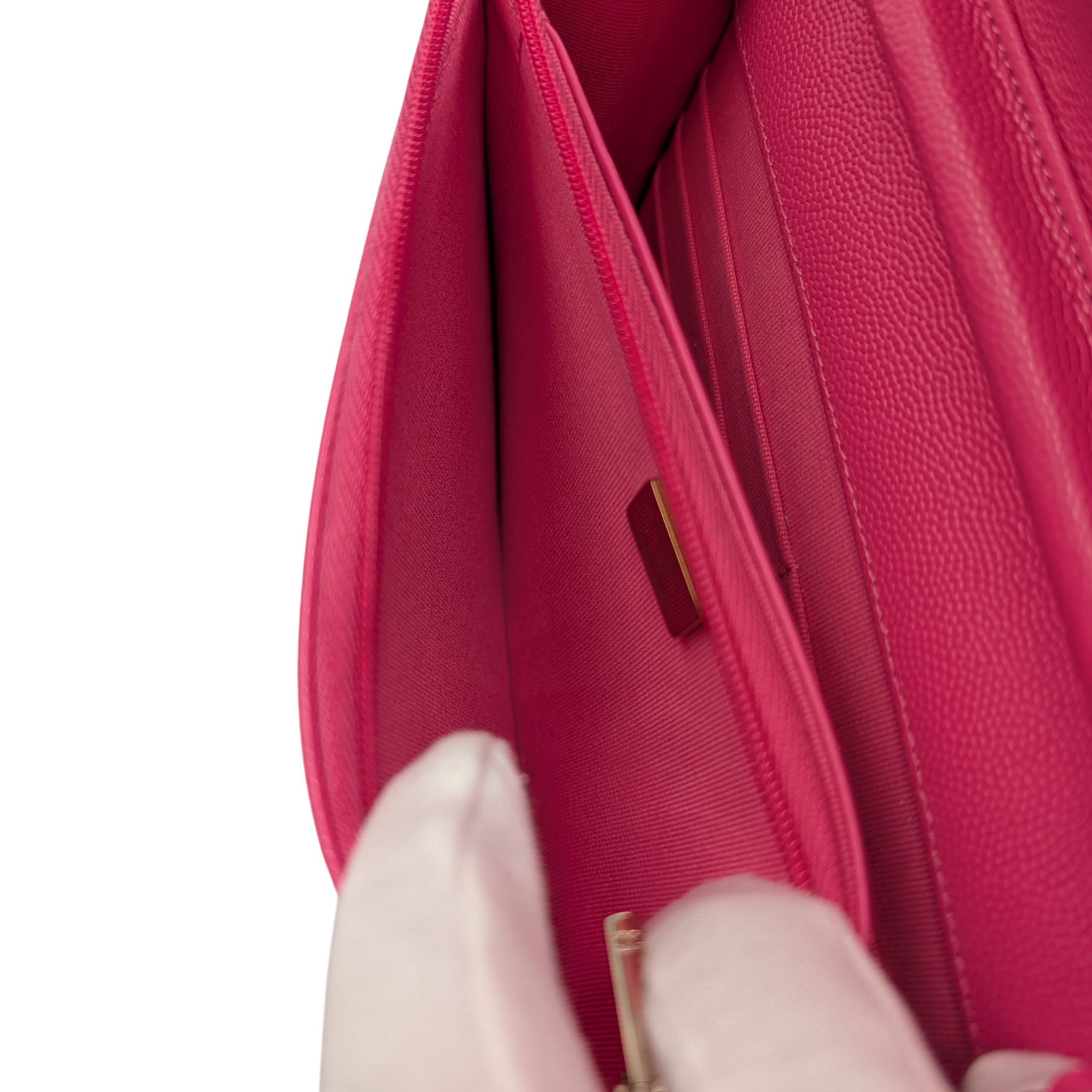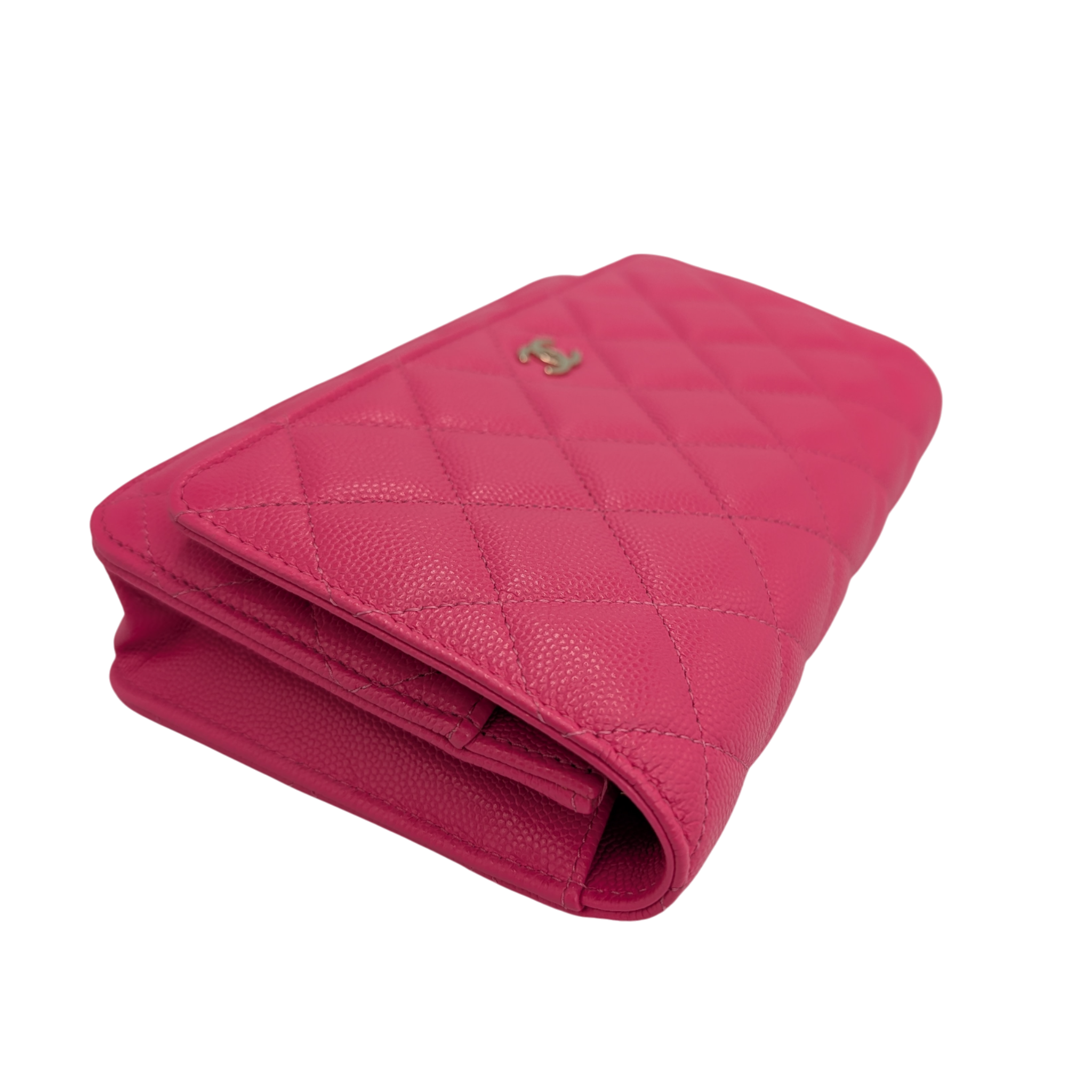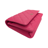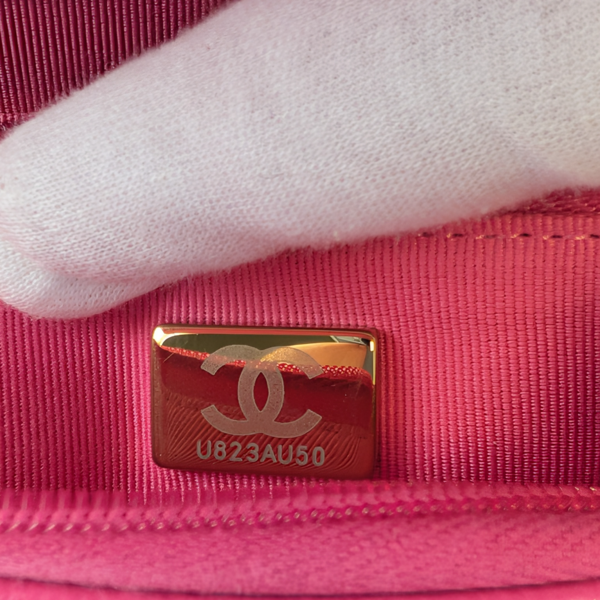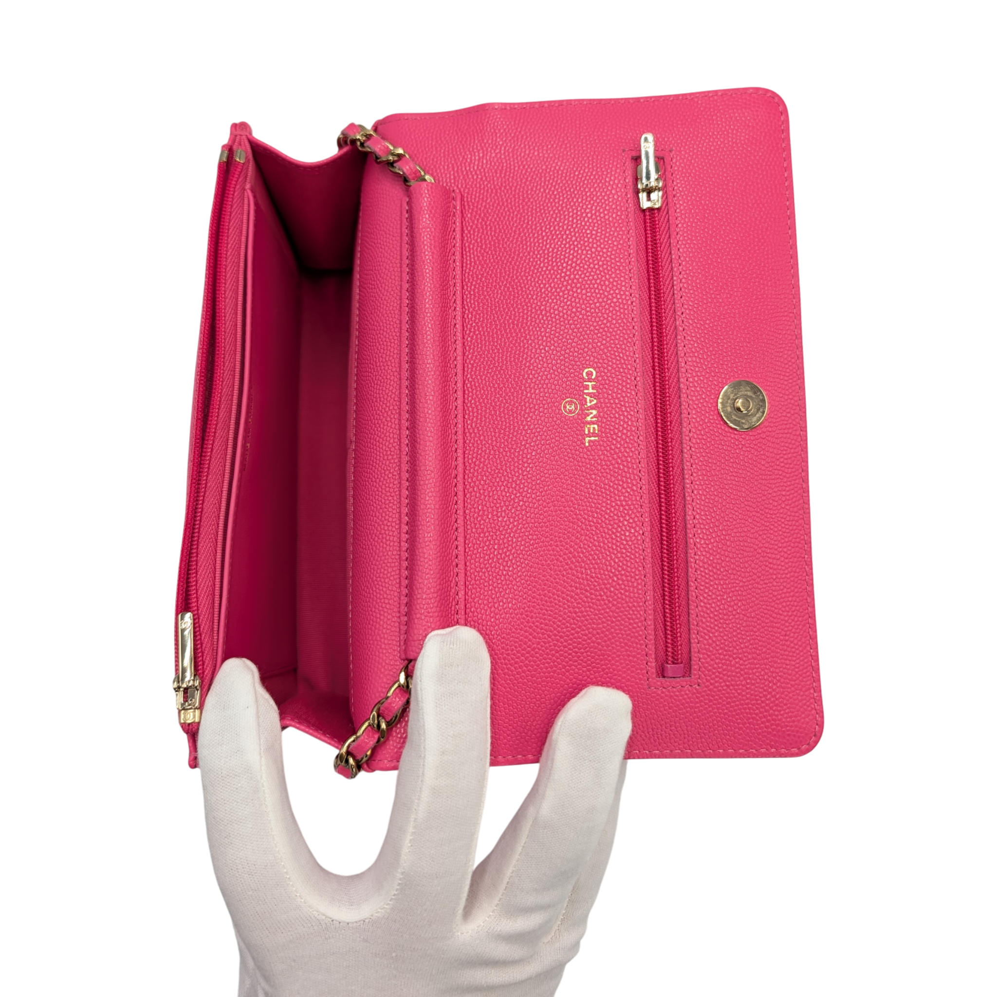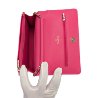 Inside the WOC is a combination of Bag and wallet and offers card slots, a zipper compartment and a separate main compartment. Essentials such as smartphones, cards and small valuables can be stowed away clearly. The Wallet on Chain is one of the most sought-after Chanel models and is suitable as both a day and evening bag.