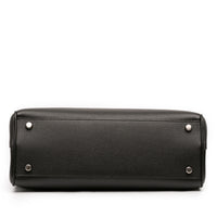 Die Gucci Small Grained Calfskin Zumi Top Handle Bag präsentiert sich als strukturierte Satchel mit klaren Linien und einem eleganten Top-Handle-Format. Das fein genarbte Kalbsleder verleiht der Silhouette eine dezente Textur und eine hochwertige Haptik, während flache Ledergriffe das klassische Tragen in der Hand unterstützen. Ein abnehmbarer, flacher Schulterriemen ergänzt das Design und ermöglicht je nach Anlass das Tragen über der Schulter oder quer am Körper.