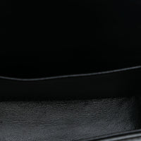 Le mini sac à bandoulière Celine Triomphe en cuir de veau brillant se caractérise par sa silhouette compacte et le logo Triomphe frappant. Le modèle possède une bandoulière réglable et un rabat avec fermoir en métal. La combinaison de cuir noir et de matériel doré donne au sac un look clair et moderne.