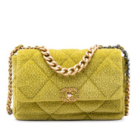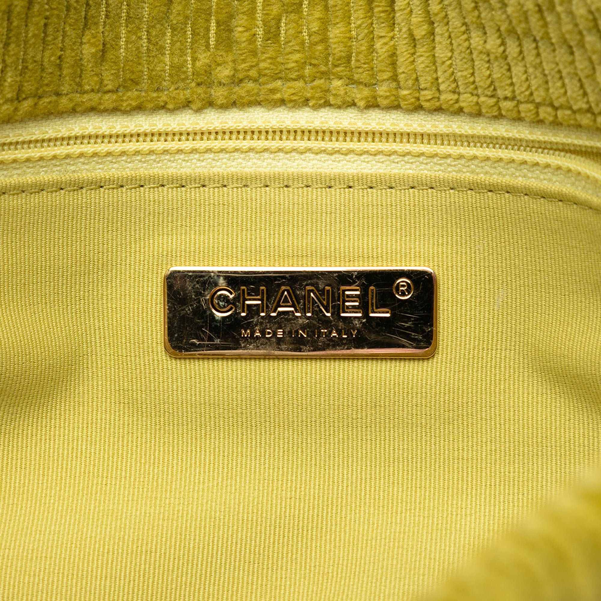 Die Chanel Large Corduroy 19 Flap vereint die lässige Silhouette der 19-Linie mit einer markanten Cord-Optik. Das gesteppte Corduroy sorgt für eine weiche, strukturierte Haptik und setzt einen modernen Akzent zur klassischen Klappentasche. Charakteristisch sind der Überschlag mit CC-Drehverschluss sowie die harmonische Kombination aus Metallkette und durchflochtenem Leder an Griff und Schulterriemen.