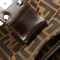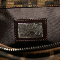 Ce Fendi est fabriqué dans la célèbre toile Zucca, il a une lanière plate en cuir, un dessus ouvert avec une lanière plate et une fermeture magnétique, une poche extérieure et une poche intérieure zippée.