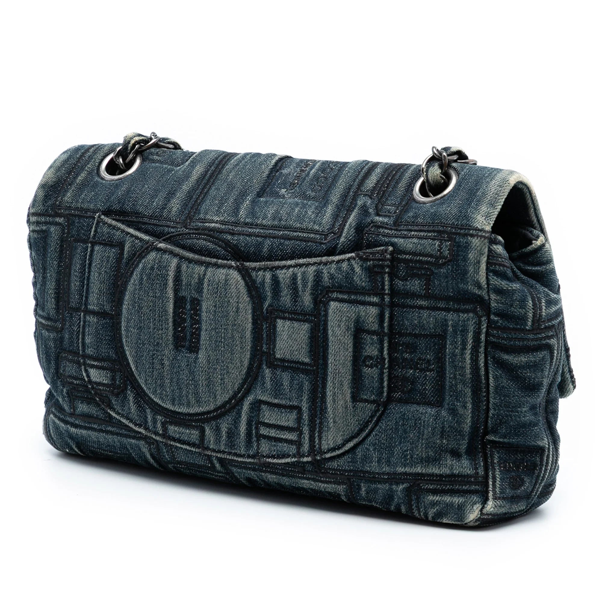 Chanel Classic Single Flap Perfume Bottle Medium Blue Embroidered Denim