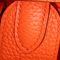 Le Lindy 34 d'Hermès, en orange vif et en cuir souple Clémence, est une véritable pièce de déclaration au design iconique. Sa forme caractéristique légèrement biseautée, combinée à des doubles anses et à une bandoulière amovible, offre de multiples possibilités de port - à la main ou à l'épaule. Le sac est orné de matériel précieux en palladium et dispose d'un intérieur pratique et spacieux avec des poches latérales et une fermeture éclair sécurisée. Un compagnon luxueux au charme sportif et élégant.