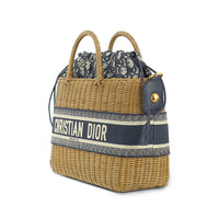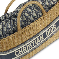 Ce sac Fabriqué en raphia tissé, il présente un corps magnifiquement structuré complété par d'élégantes poignées roulées et une bandoulière plate amovible. Le dessus ouvert se ferme avec un élégant cordon de serrage en toile incliné, tandis que l'insert en ruban tissé Christian Dior distinctif au centre du sac ajoute une touche de sophistication. À l’intérieur, il y a des poches zippées et plaquées pratiques pour une organisation sans effort.