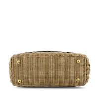 Le sac Dans l'ensemble, il est en très bon état Condition avec quelques petites traces d'usure telles que de légères rayures et taches sur le raphia et la toile. Dans le coin, vous remarquerez peut-être quelques éraflures et une légère décoloration. La poignée supérieure est usée. L'intérieur présente quelques petites taches mais à part ça, il est propre et bien entretenu.