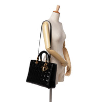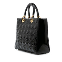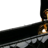Dior Lady Dior Large Cuir Verni Cannage Noir Or