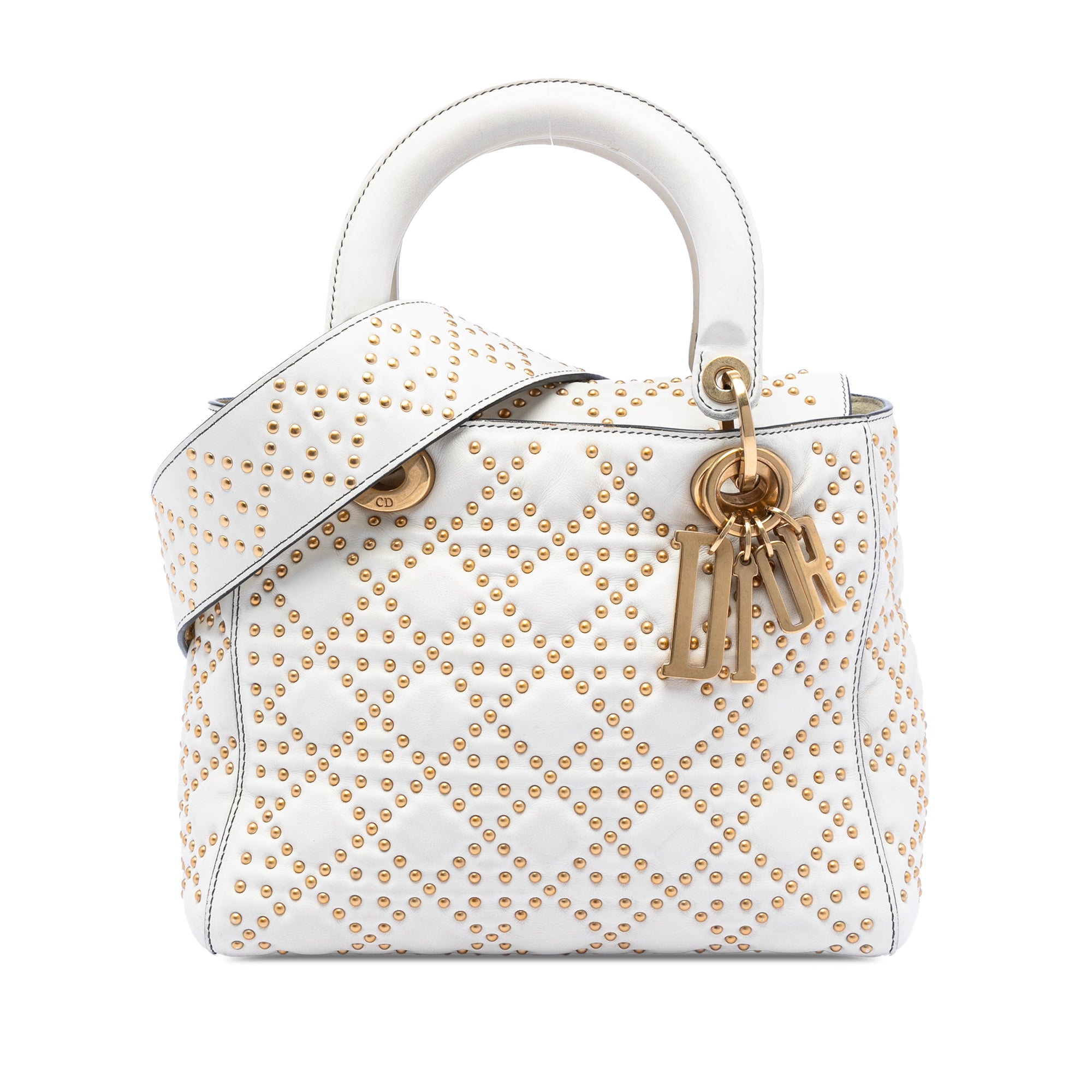Dior Lady Dior Medium White Lambskin Gold