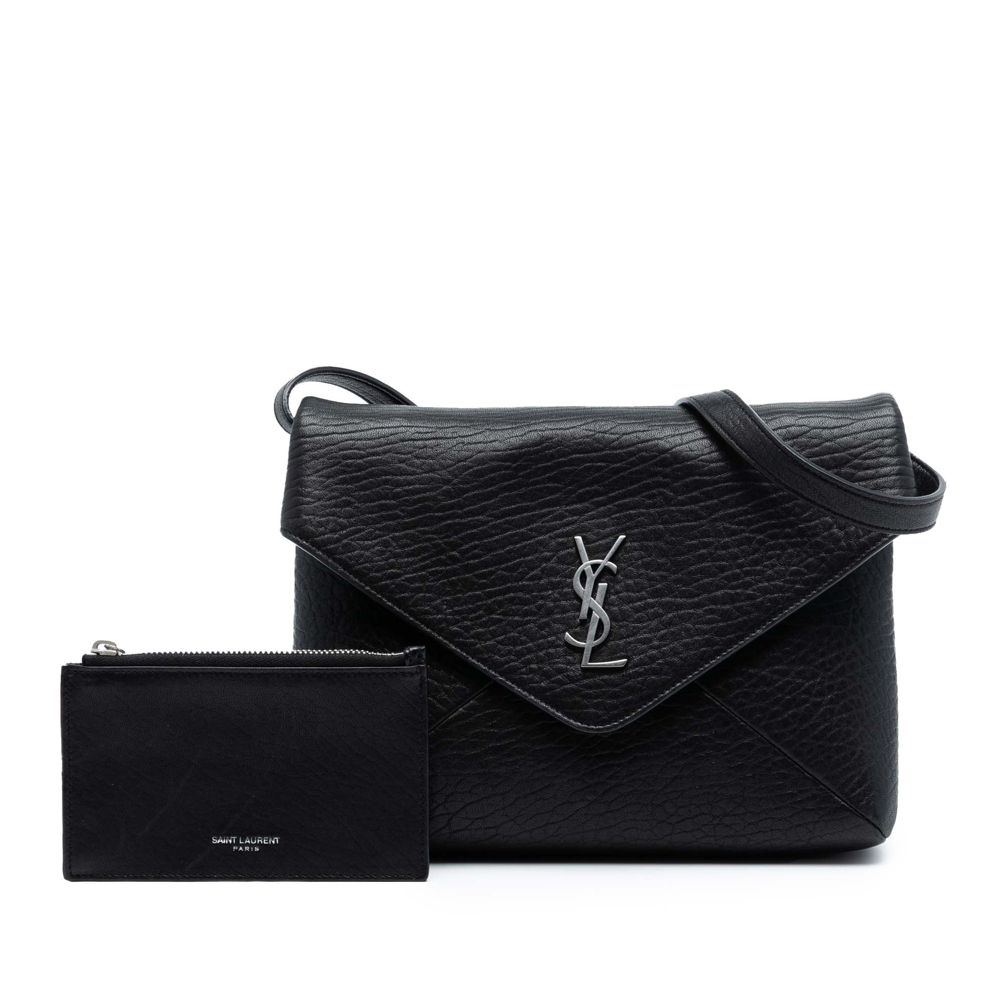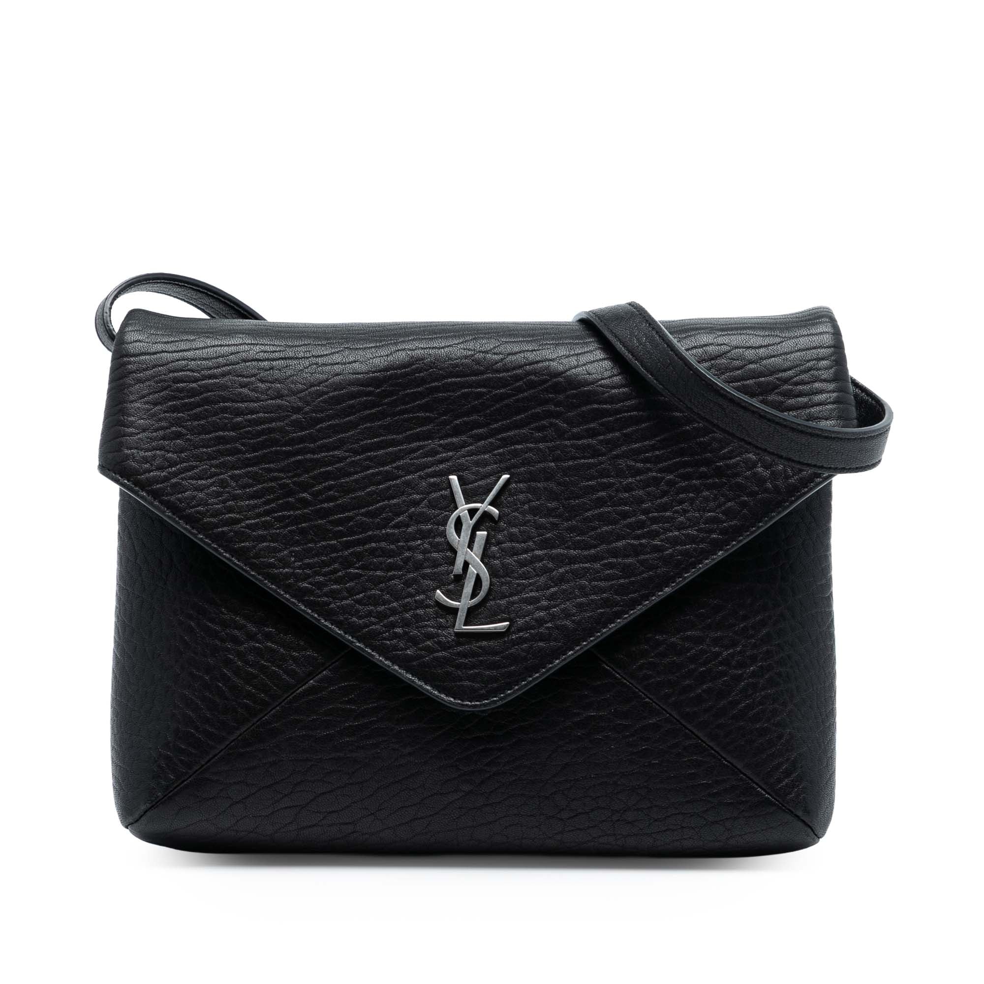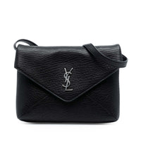Yves Saint Laurent Cassandre Envelope Messenger Bag Black Lambskin Monogram