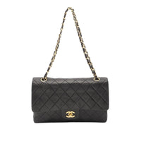 Chanel Classic double rabat à volet moyen de la marine moyenne d'agneau