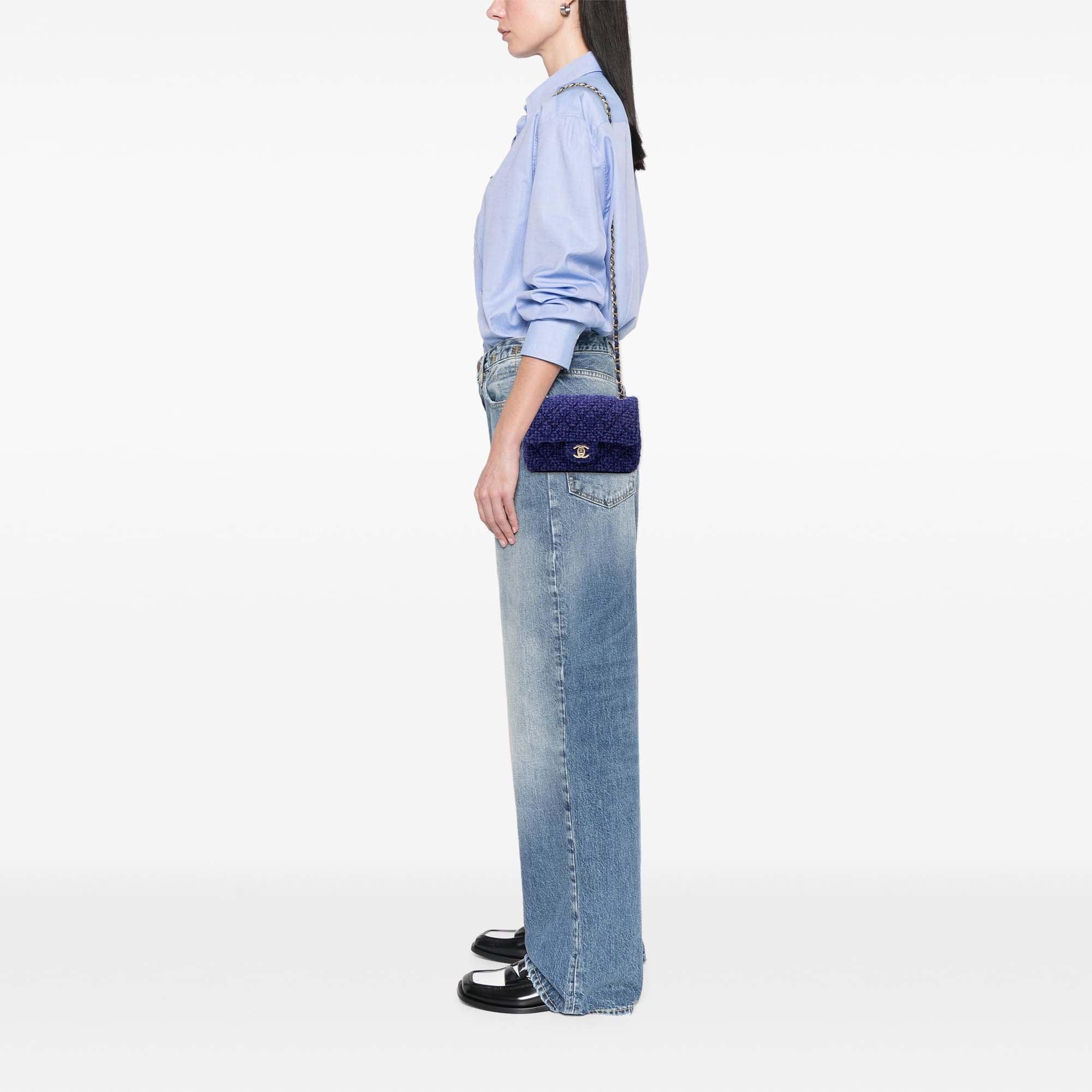 Chanel Classic Single Flap Mini Blue Tweed Gold