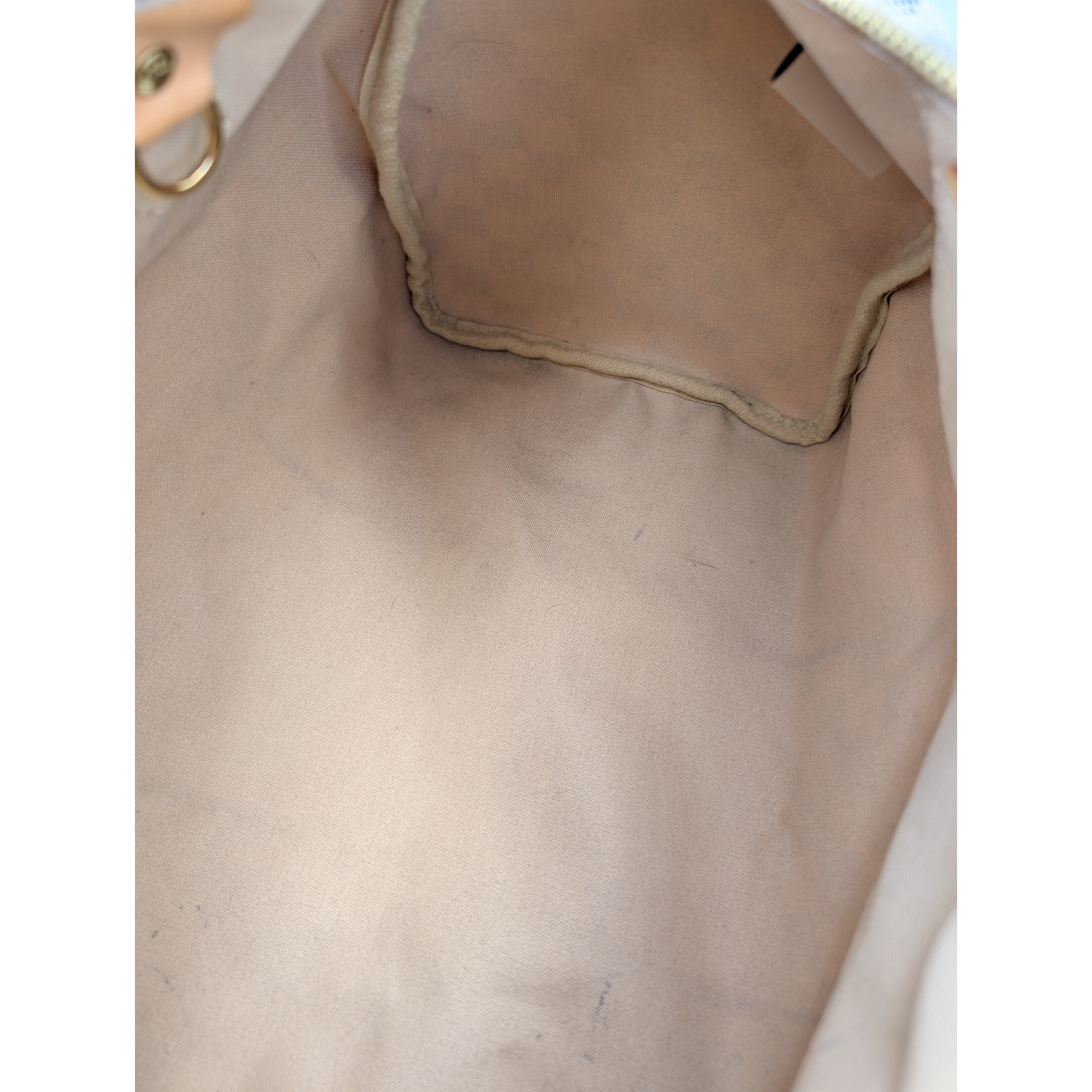 Les poignées présentent des rayures, des usures et des taches mineures. La doublure intérieure présente des traces d'usure et une certaine décoloration. Le matériel présente des rayures et des signes de ternissement.