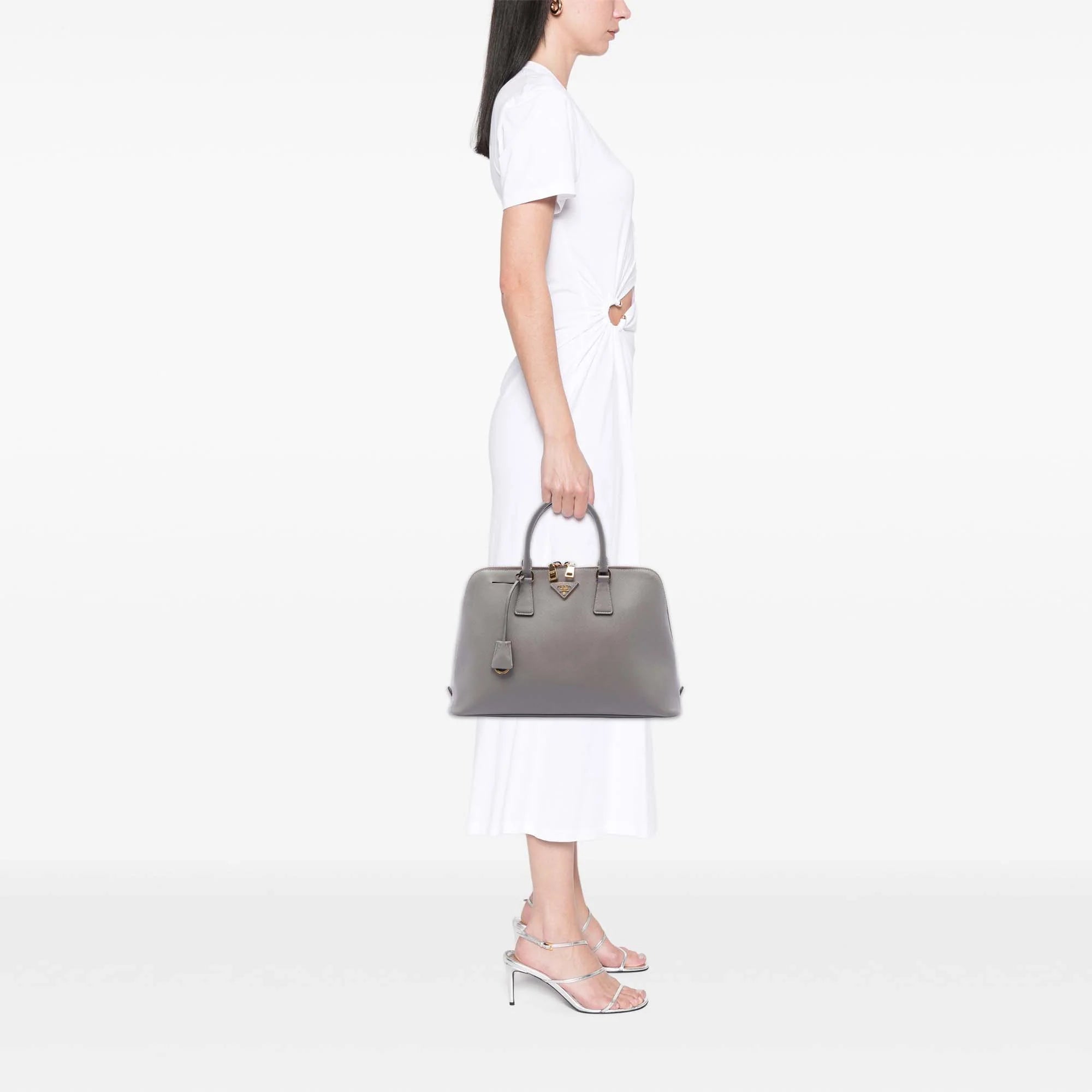 Le Prada Promenade Large allie élégance classique et charme moderne. Fabriqué à partir de cuir Saffiano Lux de haute qualité dans un beau ton gris, il est impressionnant sac par leur forme structurée et leur caractère intemporel. Deux anses courtes vous permettent de le porter au bras ou à la main – du plus élégant au plus décontracté. A l'intérieur, plusieurs compartiments assurent une organisation bien pensée.